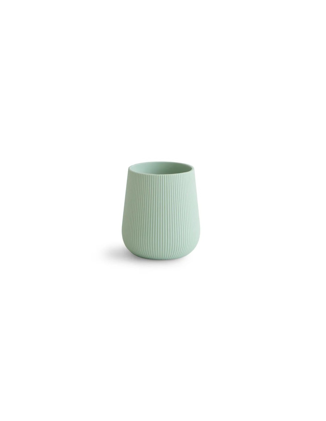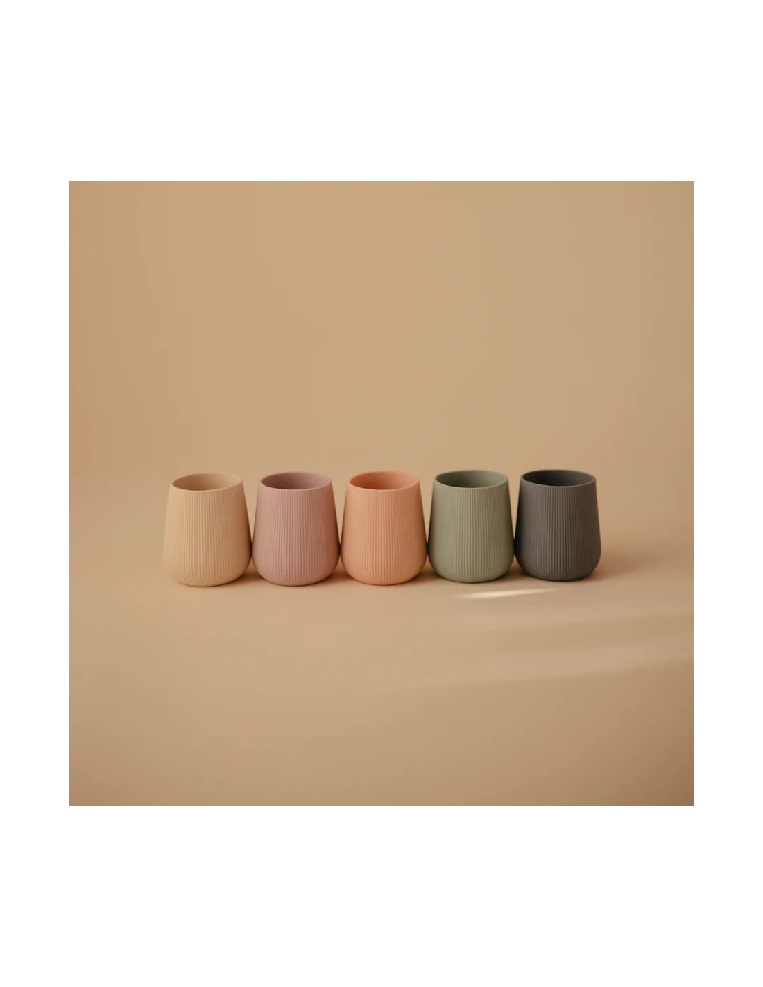 Facilita la transición del biberón al vaso con el vaso de silicona Mushie para principiantes.