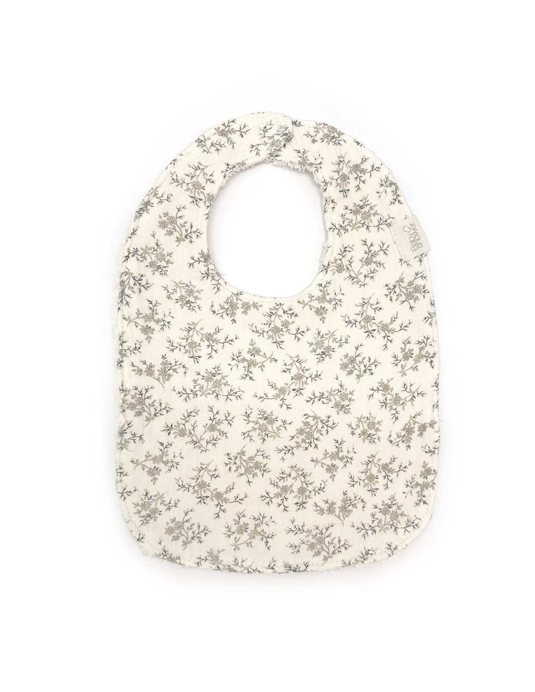 Babero para el primer año, con reverso en rizo de algodón 100% Oeko-Tex. Cierre velcro.