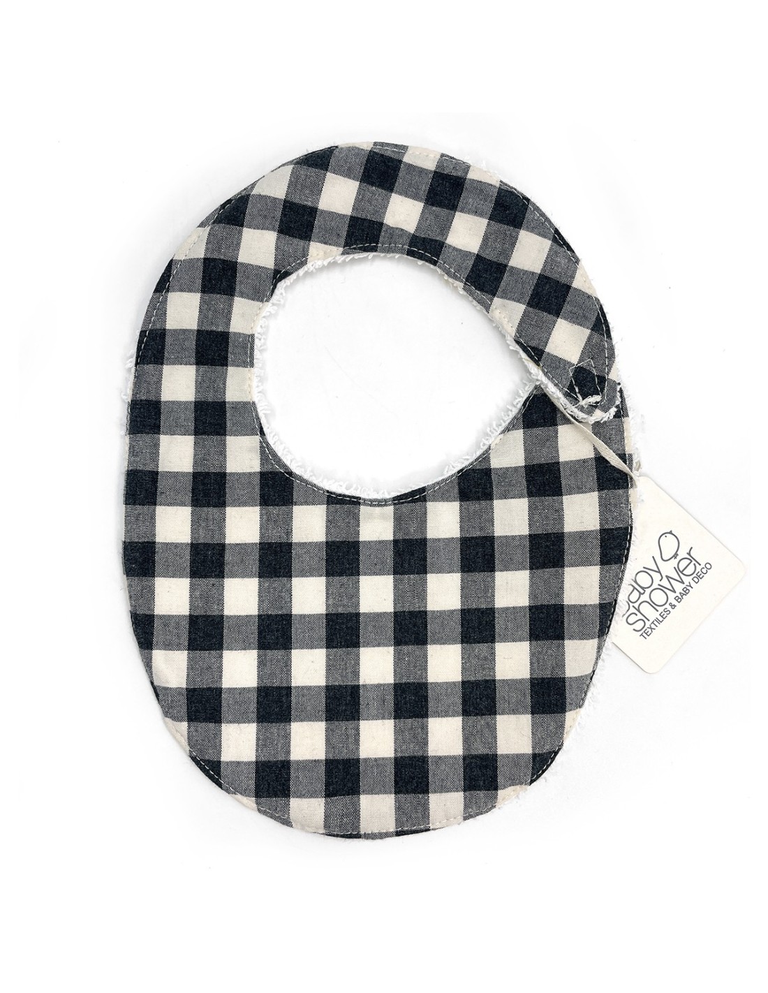 Babero para los primeros meses y hasta que cumpla un año. Frontal en tejido de algodón estampado. Reverso con toalla de rizo blanco de alto gramaje.