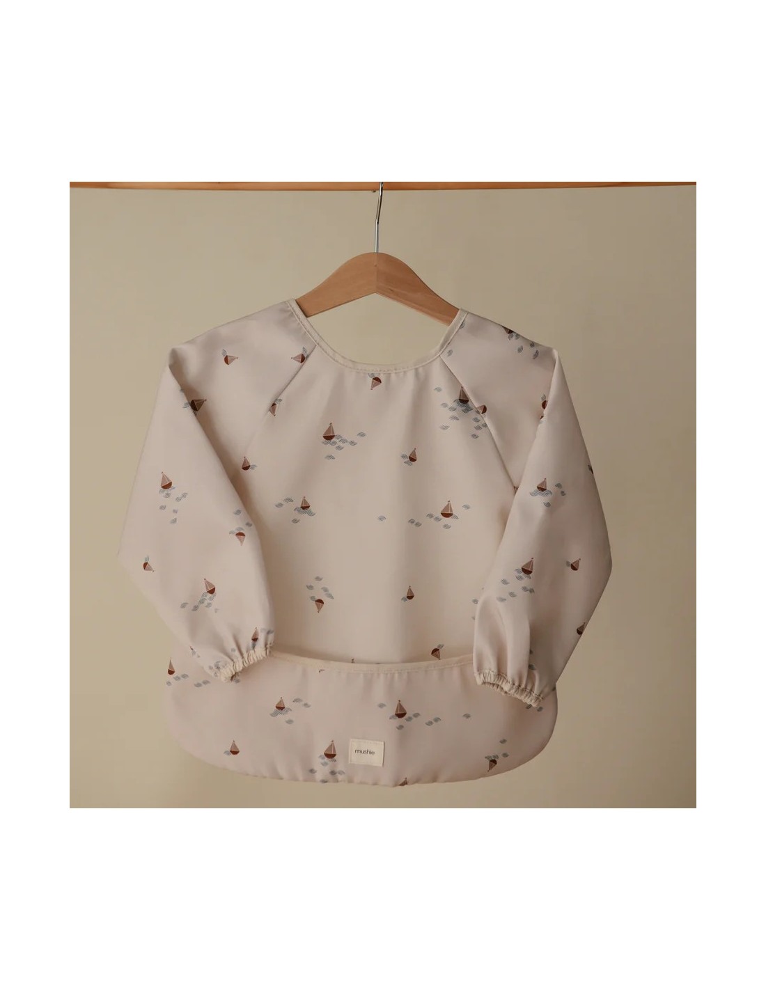 MEDIDAS: El babero de manga larga mide 36,40cm de largo y 40cm de ancho.