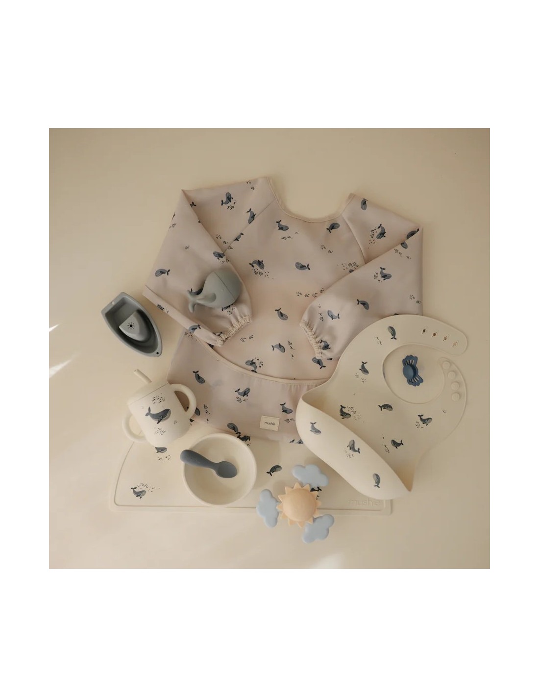 Mantén a los niños limpios a la hora de comer, durante proyectos de arte o en otros momentos de desorden con nuestro babero de manga larga resistente al agua. Su amplio bolsillo recoge fácilmente la comida mientras el babero le mantiene seguro y cubre completamente la ropa. Con un cierre de velcro en la parte posterior del cuello, tiene el tamaño perfecto para los más pequeños de entre 6 y 24 meses. Los padres aprecian el material que se limpia con un paño y que también es apto para lavadoras, por lo que puedes afrontar el día sin manchas en la ropa.