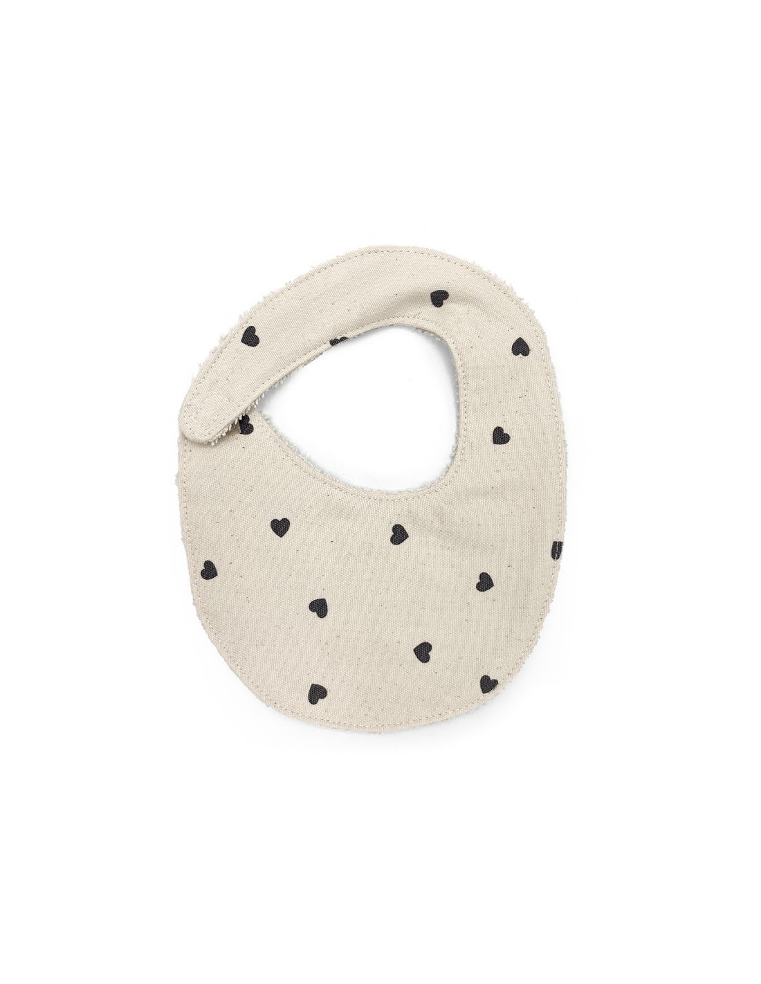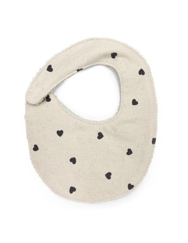 Babero para los primeros meses y hasta que cumpla un año. Frontal en tejido de algodón estampado. Reverso con toalla de rizo blanco de alto gramaje.
