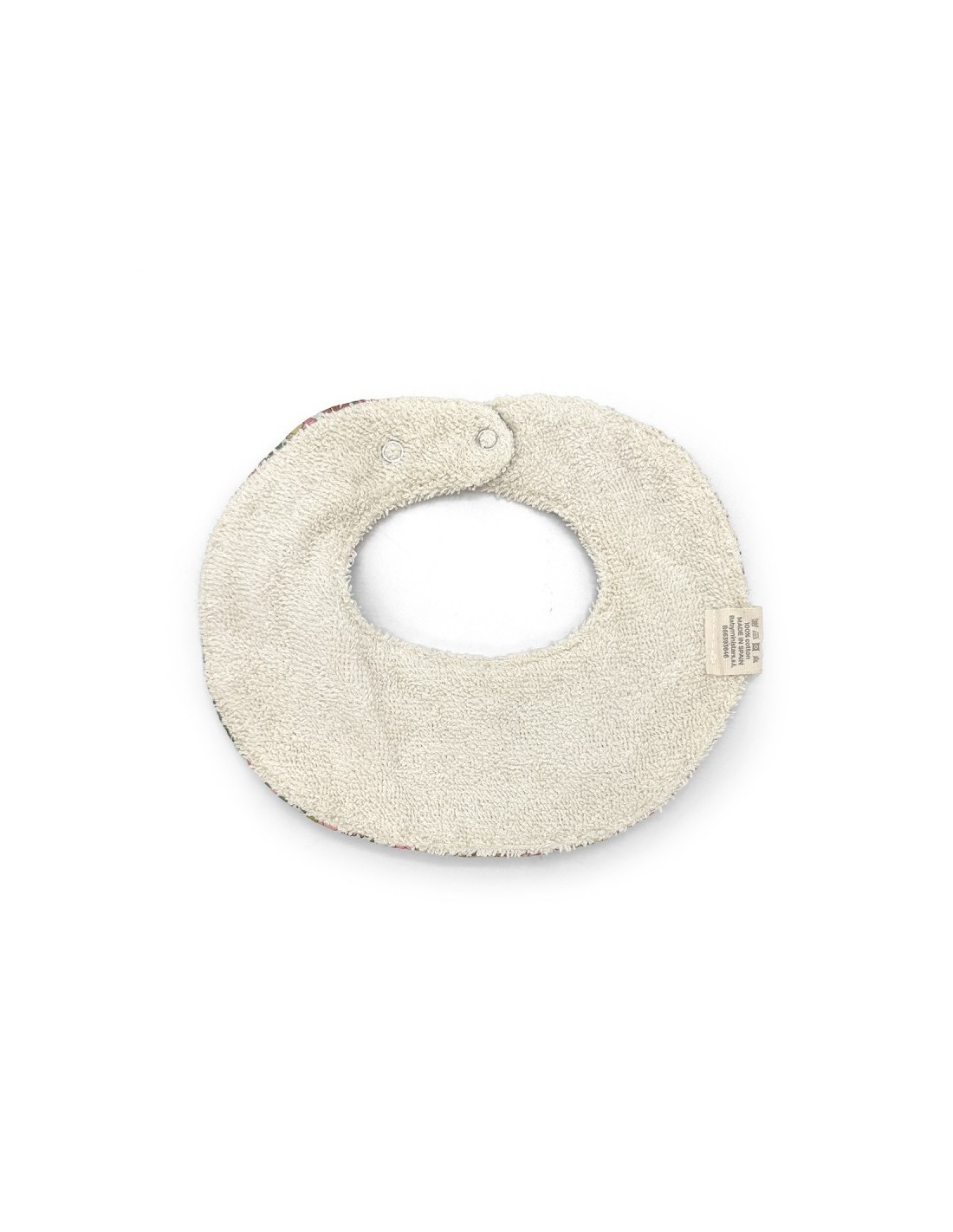 Babero secababitas en forma de volante que combina un lado de asa alodón con otro de rizo.