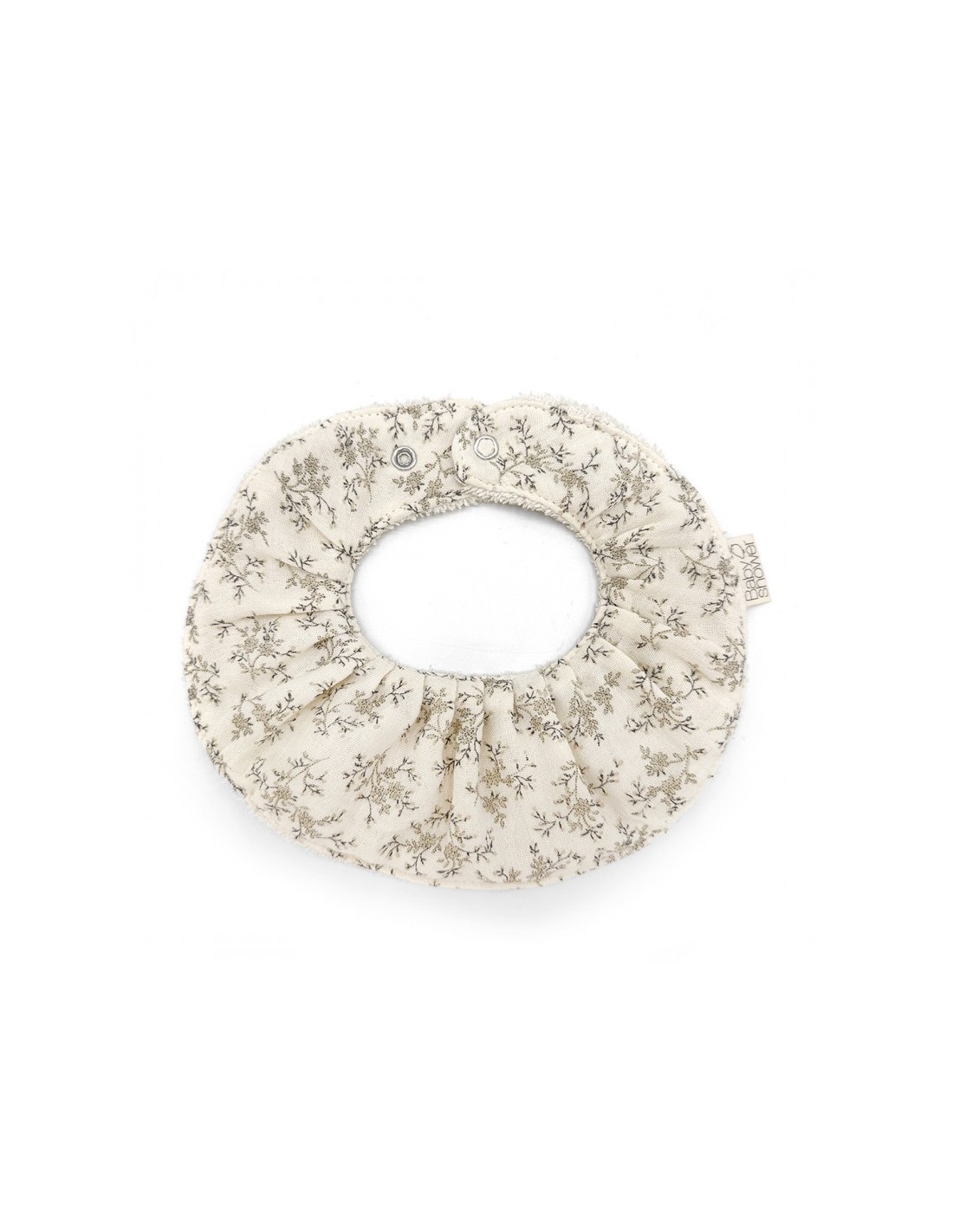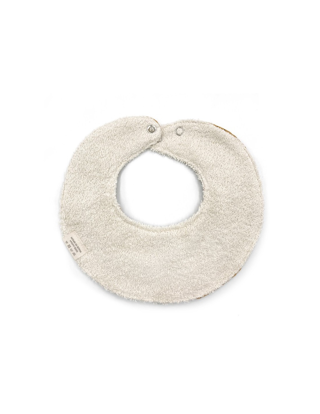 Babero secababitas en forma de volante que combina un lado de asa alodón con otro de rizo.