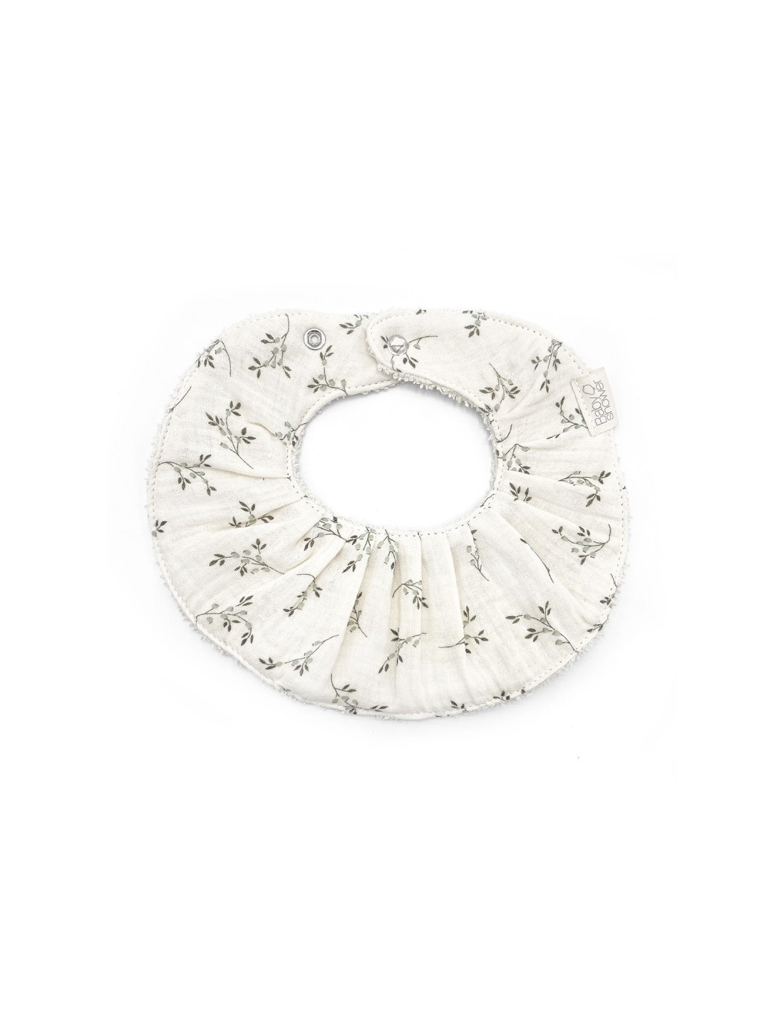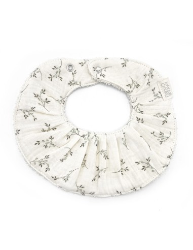 Babero secababitas en forma de volante que combina un lado de asa alodón con otro de rizo.