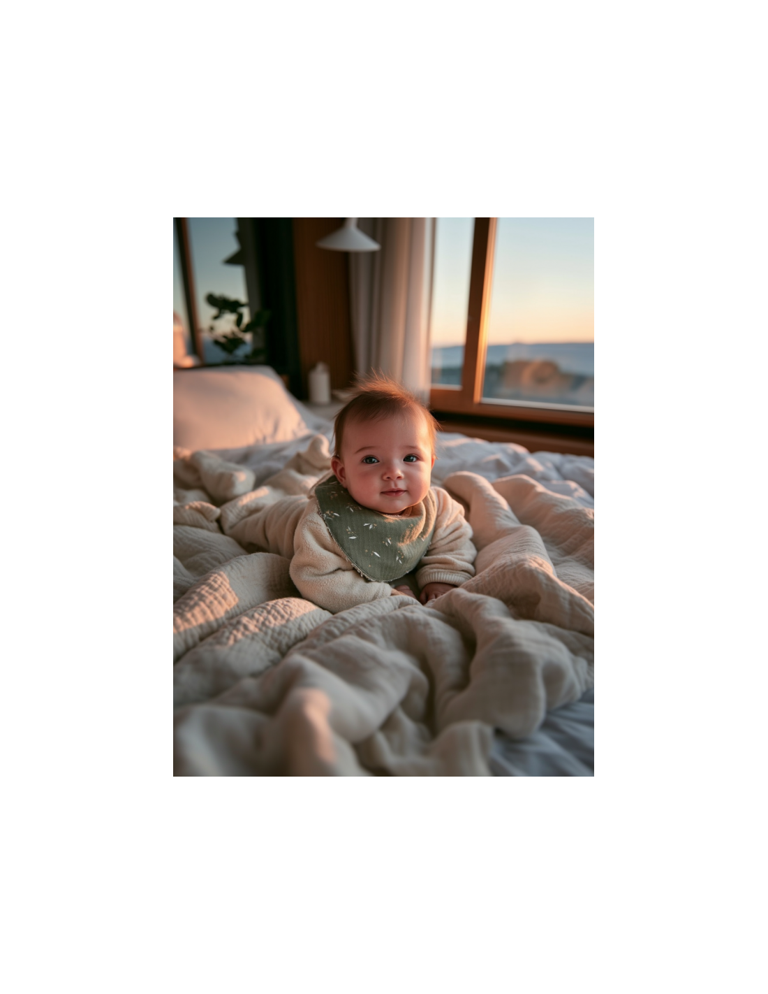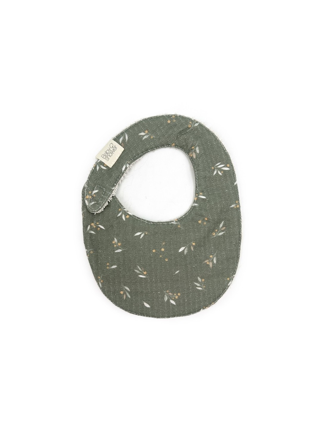 Babero para los primeros meses con reverso en rizo de alodón 100% Oeko-Tex. Cierre velcro.
