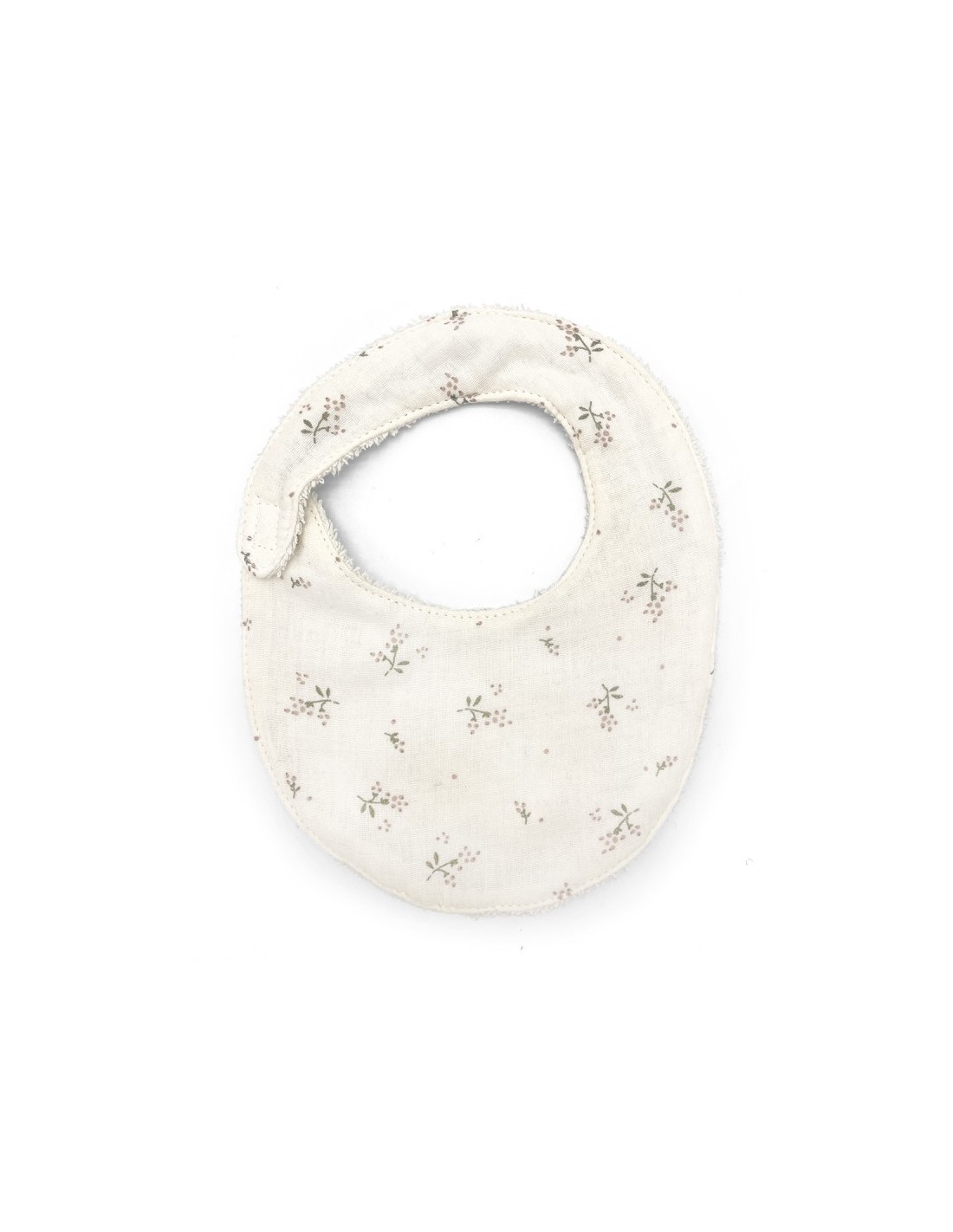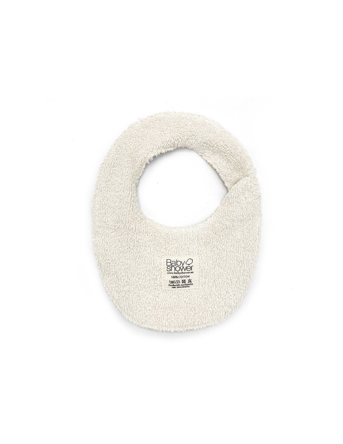 Babero para los primeros meses y hasta que cumpla un año. Frontal en tejido de algodón estampado. Reverso con toalla de rizo blanco de alto gramaje.