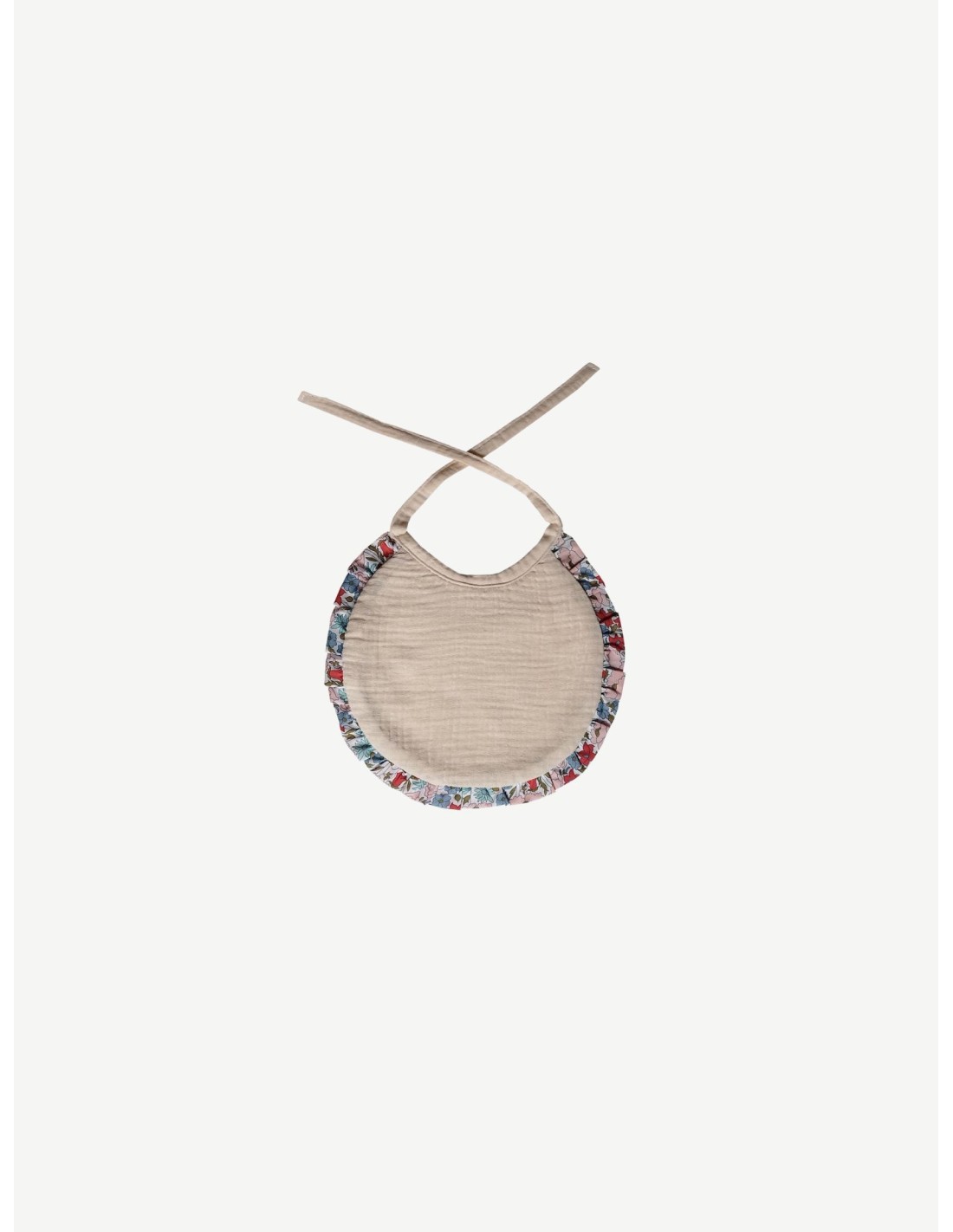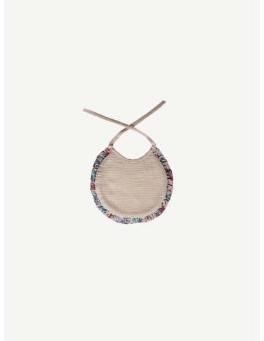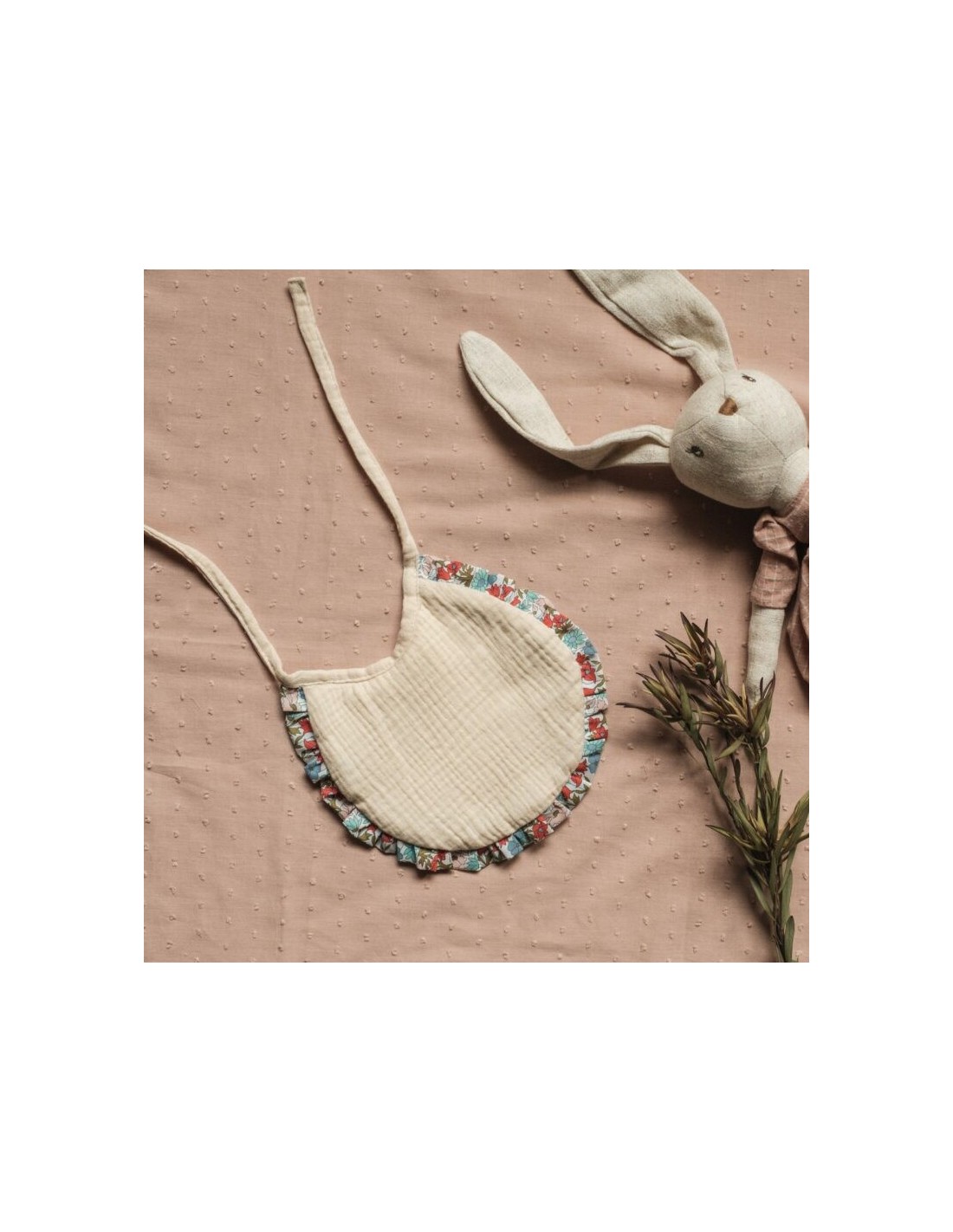 Babero de recién nacido con rizo de Algodón. Se atan al cuello mediante lazo. Talla hasta los 6 meses aprox. Confeccionado con tejido Liberty London Original.