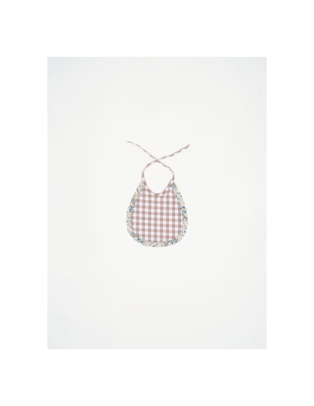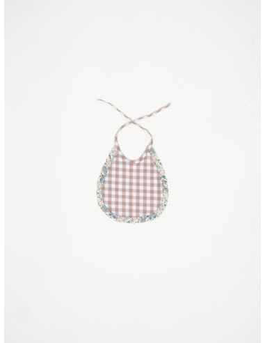 Babero mini vichy beige con volante Mauri, suave y delicado, ideal para los primeros meses del bebé.