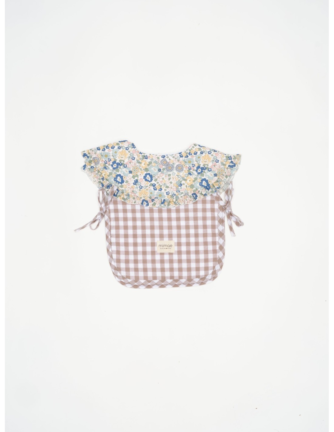 Babero Mimae con cuello y volante estilo  pechera. Forrado en rizo toalla de algodón muy absorbente y suave, se cierra con un velcro en el escote y se adapta a la medida del niño con los lacitos laterales. Desde 6 meses a 4 años. El cuellito esta forrado con algodón orgánico.