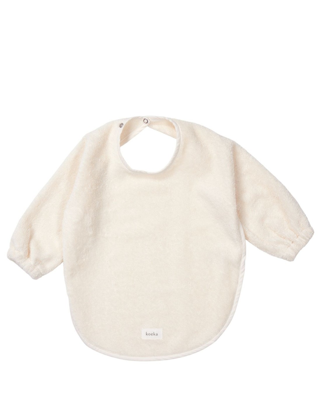 El babero con mangas Koeka ha sido desarrollado especialmente para cuando tu hijo empieza a comer solo. Debido al gran tamaño y a las mangas con elástico al final, el babero protege bien la ropa contra derrames. El cierre de botón a presión tiene dos posiciones diferentes, lo que hace que el babero sea adecuado tanto para bebés como para niños pequeños. El babero con mangas está fabricado en tejido de rizo, fácil de lavar y disponible en muchos colores.