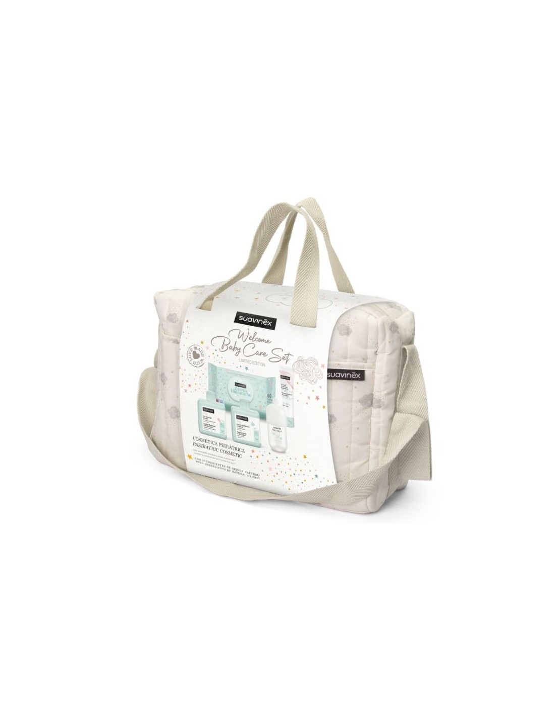 El Bolso Baby Care Beige de Suavinex es el conjunto ideal para cuidar la delicada piel del bebé desde sus primeros días, con productos diseñados para su higiene diaria.