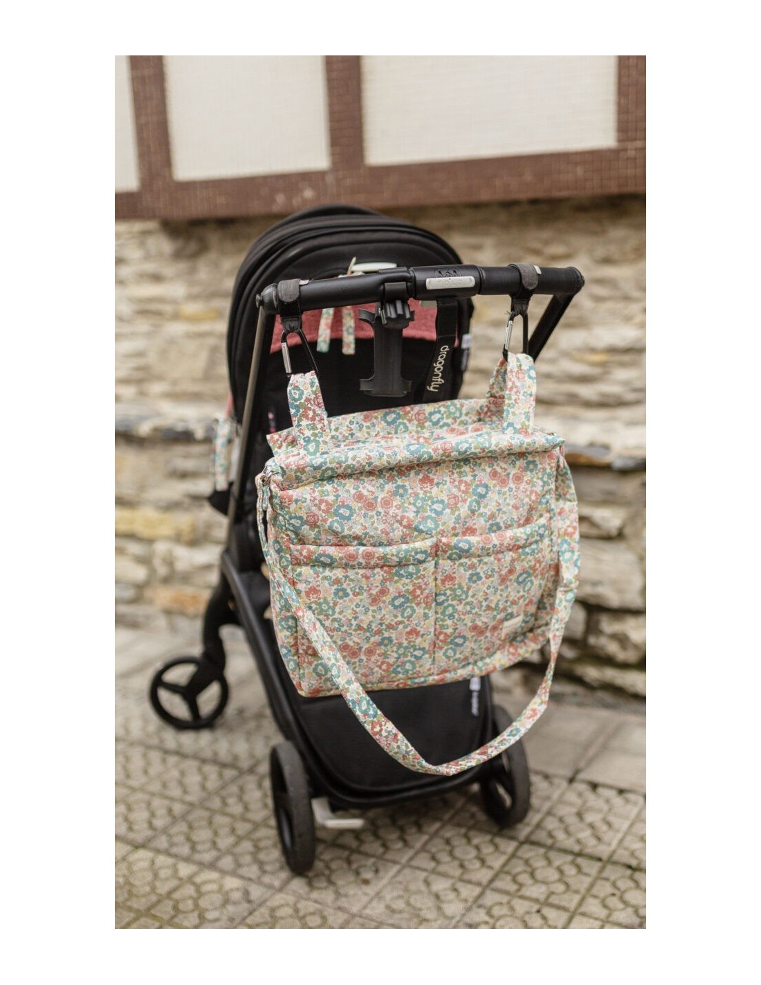 Nuestro bolso Big es ideal para guardar todo lo necesario cuando salimos de paseo. Acolchado con una guata de grosor medio está forrado con un algodón orgánico y se cierra con cremallera. Además entre el forro y la guata tiene un tejido impermeable para que el bolso no se empape si se derrama algún líquido. Tiene dos bolsillos en el exterior y otros dos en el interior para llevar todo bien organizado. Se engancha al carro mediante dos asas con corchetes. . TIENE ASA BANDOLERA.