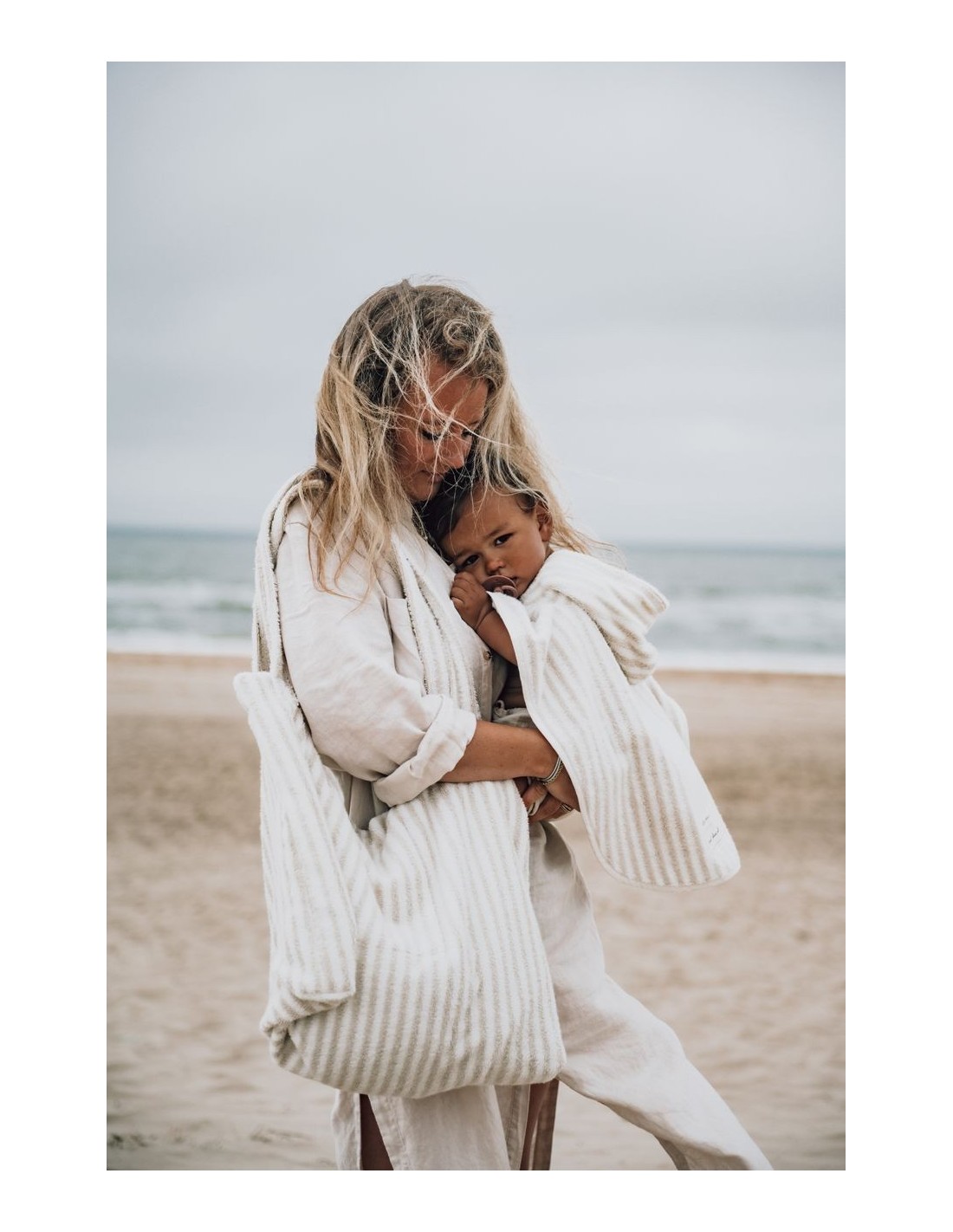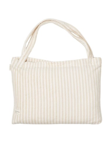 ¡Vamos a la playa! La alegre colección de Playa transmite una sensación máxima de sol, mar y playa. Los productos son suaves, absorben la humedad y están hechos de tela de rizo orgánica resistente. El patrón de rayas en colores neutros está tejido con hilo teñido y, por lo tanto, no pierde color.