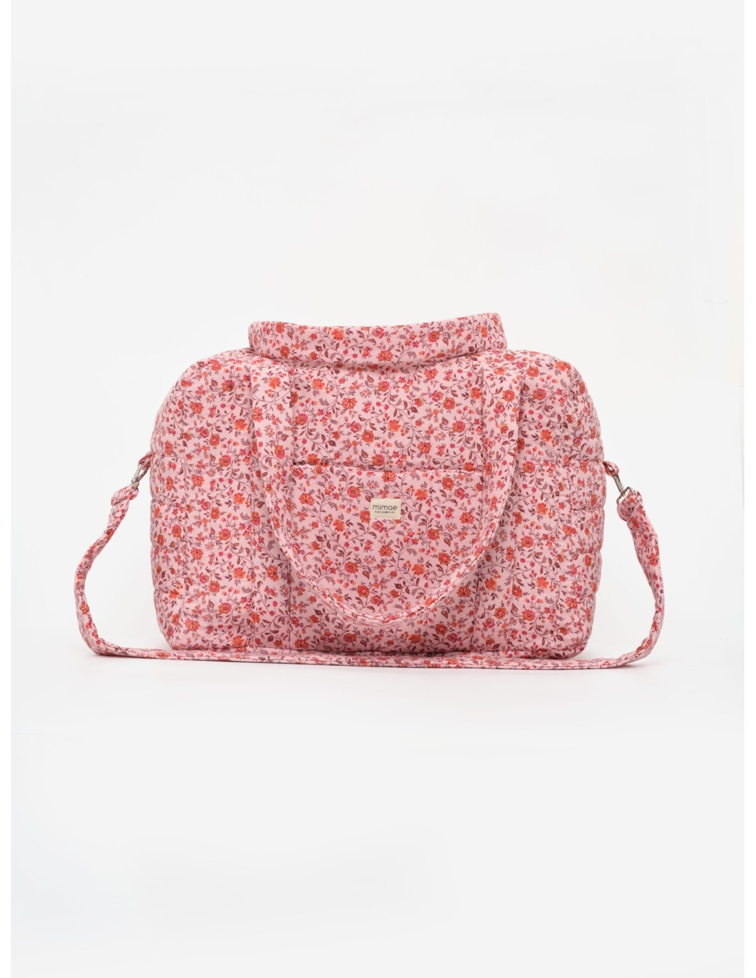 La bolsa de maternidad o fin de semana tiene un tamaño perfecto para guardar todo lo necesario para llevar al hospital o también para usarla en vuestros viajes en familia. Muy practica,tiene su doble asa enguatada y la tira bandolera de quitar y poner mediante garfios metálicos. Totalmente acolchada, tiene una guata de grosor medio para que mantenga bien la forma. Forrada con algodón 100%, tiene un bolsillo plastón en la parte exterior y cuatro en el interior.