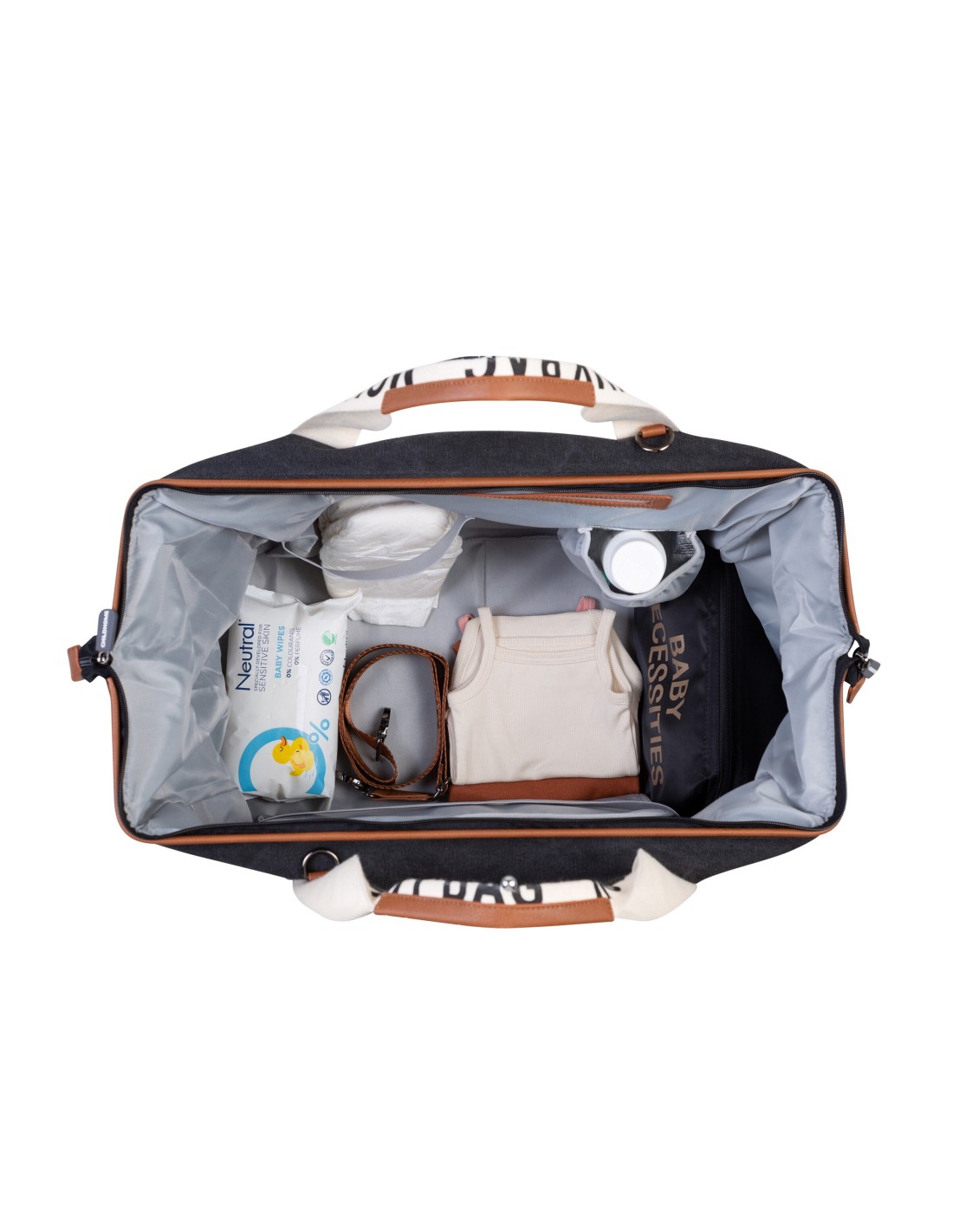 Con múltiples compartimentos y bandas elásticas en su interior, organizar tu bolsa de pañales nunca ha sido tan fácil. La Mommy Bag® incluye un cambiador para todos los cambios de pañales sobre la marcha y una correa para llevarla cómodamente al hombro. Dispone de un práctico compartimento refrigerante en el interior