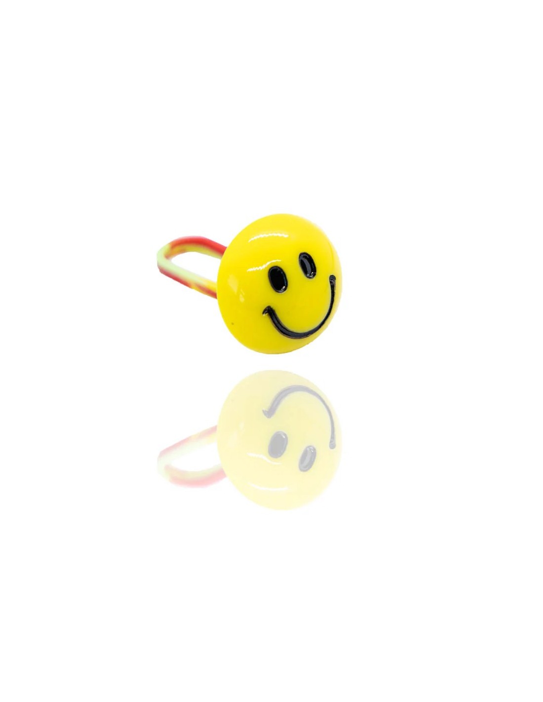 Hecho de resina y fijado en nuestra base de anillo de silicona ecológica patentada, se adhiere fácil y divertidamente a cordones, correas de velcro, coleteros y pulseras.