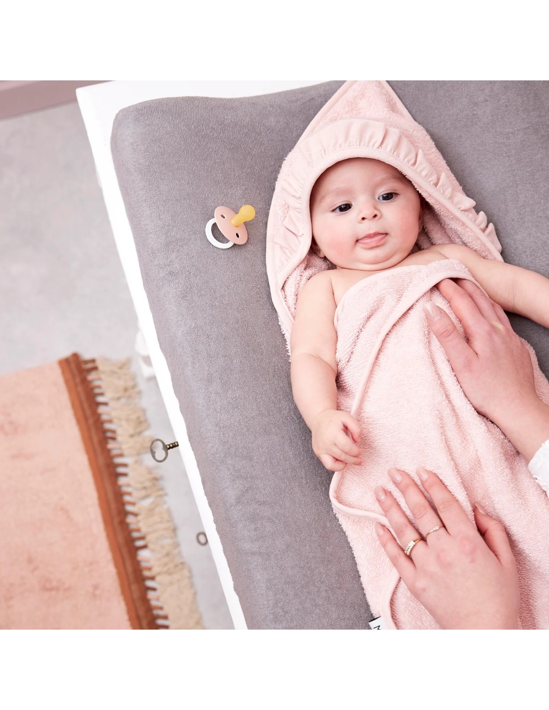 La capa de baño Meyco para bebé con volante de felpa está hecha de una tela de felpa 100 % algodón increíblemente suave. Esta capa de baño es imprescindible para cualquier pequeño. Después de bañarlo, ducharlo o nadar, simplemente envuélvalo con esta capa y póngale la capucha. Esto le dará una sensación de seguridad que le encantará.