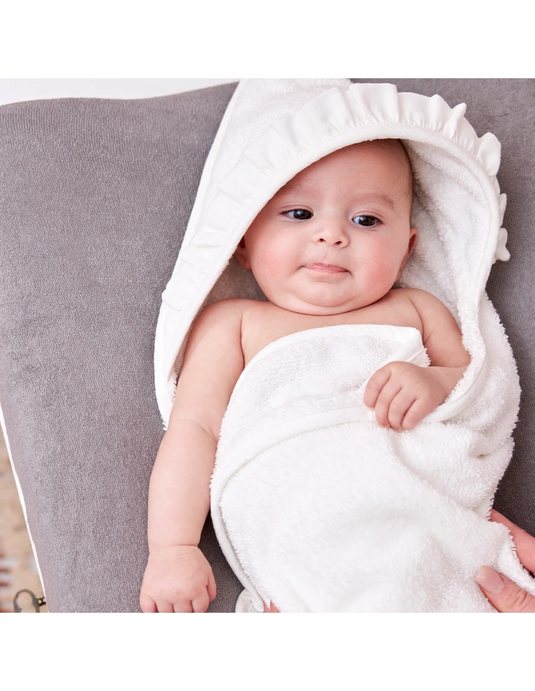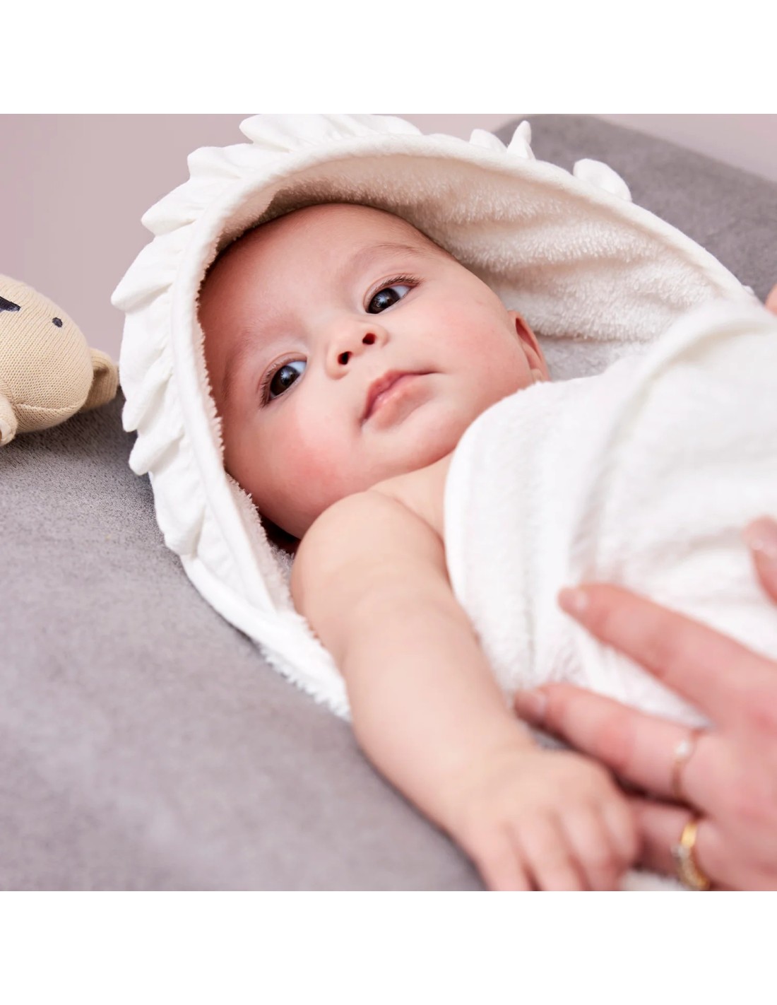 La capa de baño Meyco para bebé con volante de felpa está hecha de una tela de felpa 100 % algodón increíblemente suave. Esta capa de baño es imprescindible para cualquier pequeño. Después de bañarlo, ducharlo o nadar, simplemente envuélvalo con esta capa y póngale la capucha. Esto le dará una sensación de seguridad que le encantará.