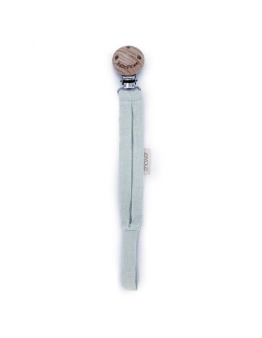 Práctica y funcional, esta pinza de madera incluye una cinta de tejido suave y resistente diseñada para sujetar el chupete y fijarlo cómodamente al bebé.