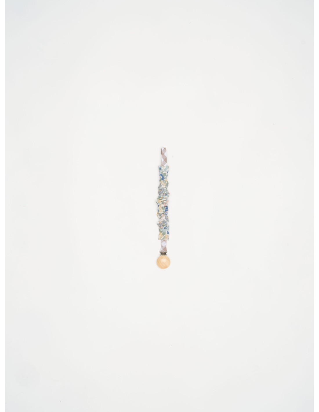 Chupetero confeccionado en tejido de algodón con un clip de madera natural. Súper practico para tener siempre el chupete cerca de tu bebé.
