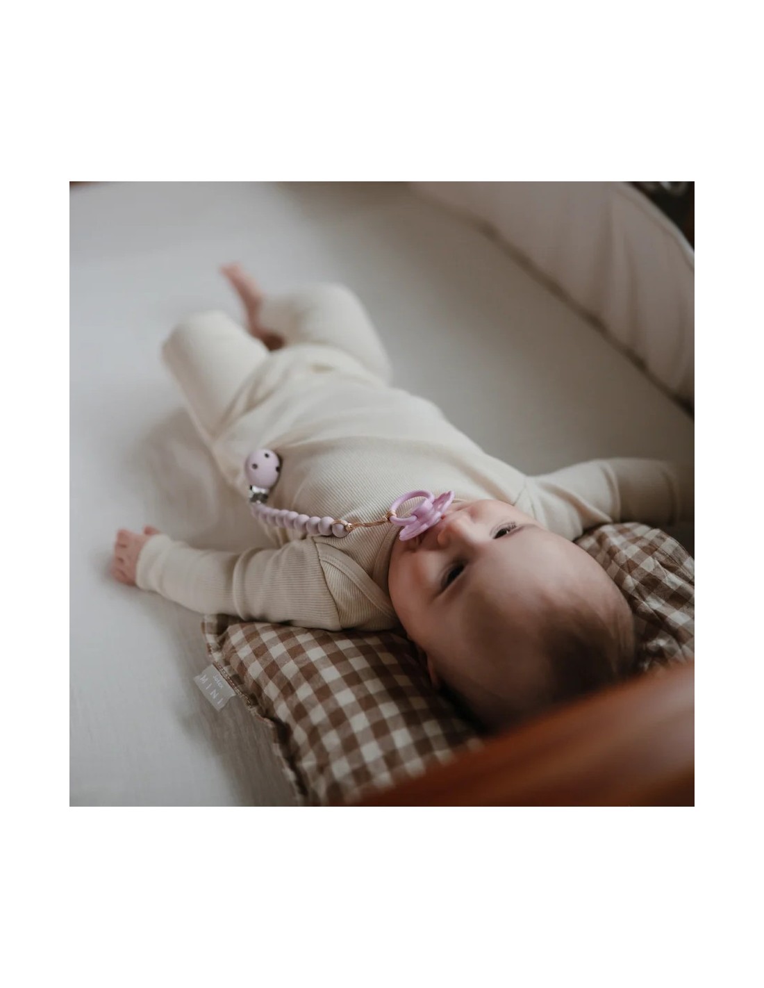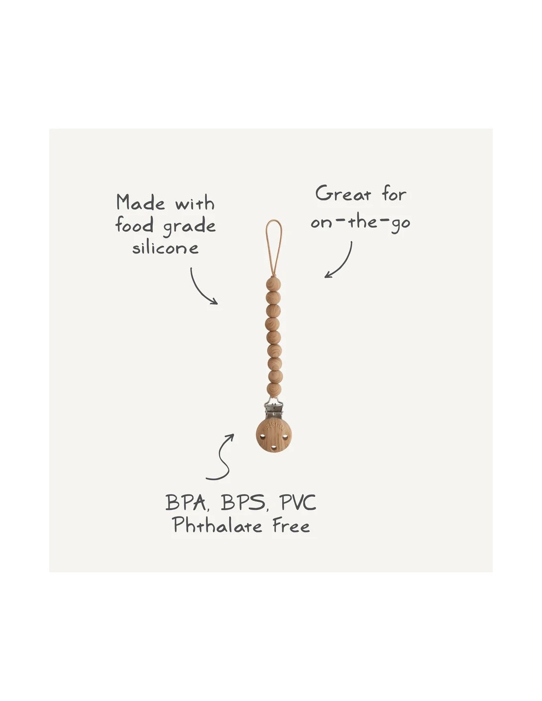El sujetachupetes de silicona Mushie ofrece durabilidad, funcionalidad y sencillez para las familias en movimiento.