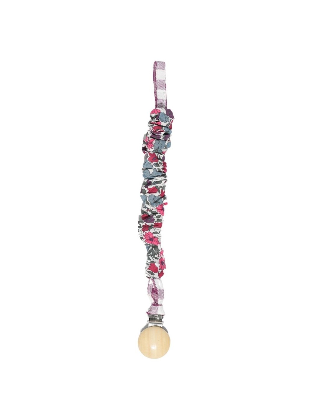 Chupetero confeccionado en tejido de algodón con un clip de madera natural. Súper practico para tener siempre el chupete cerca de tu bebé.