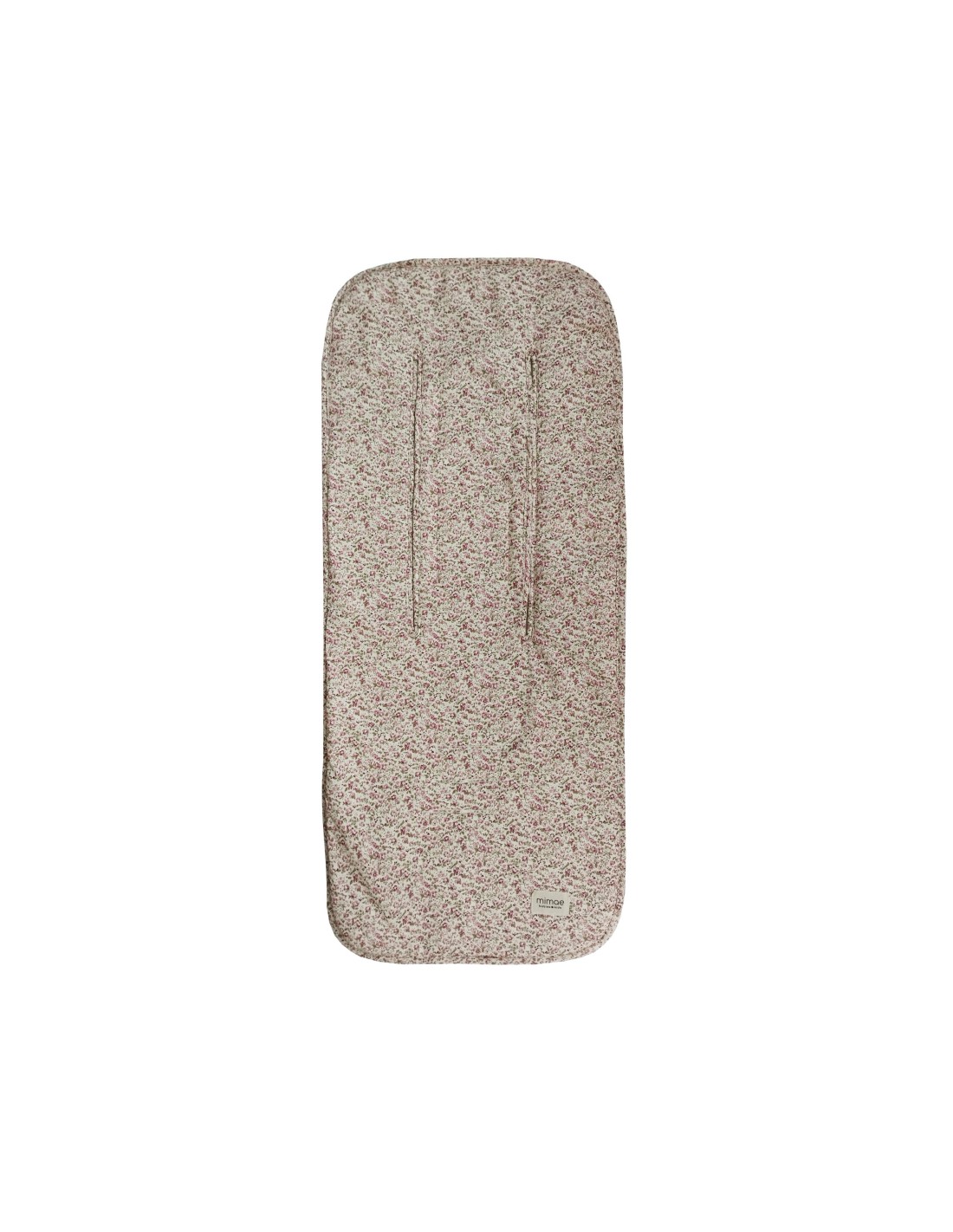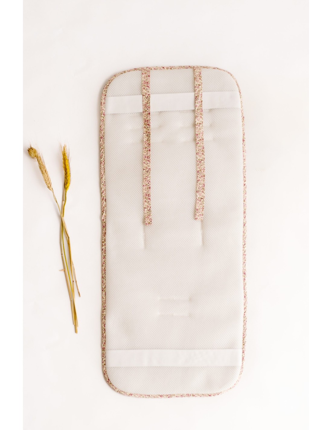 Colchonetas universales para sillas de paseo. Mulliditas tienen una guata de grosor medio y el trasero en tejido Maya 3D acolchado y transpirable. Tienen 10 ojales para que puedan adaptarse a diferentes tipos de silla. Sistema de enganche mediante goma y lazos. Estampado Liberty Nikole.