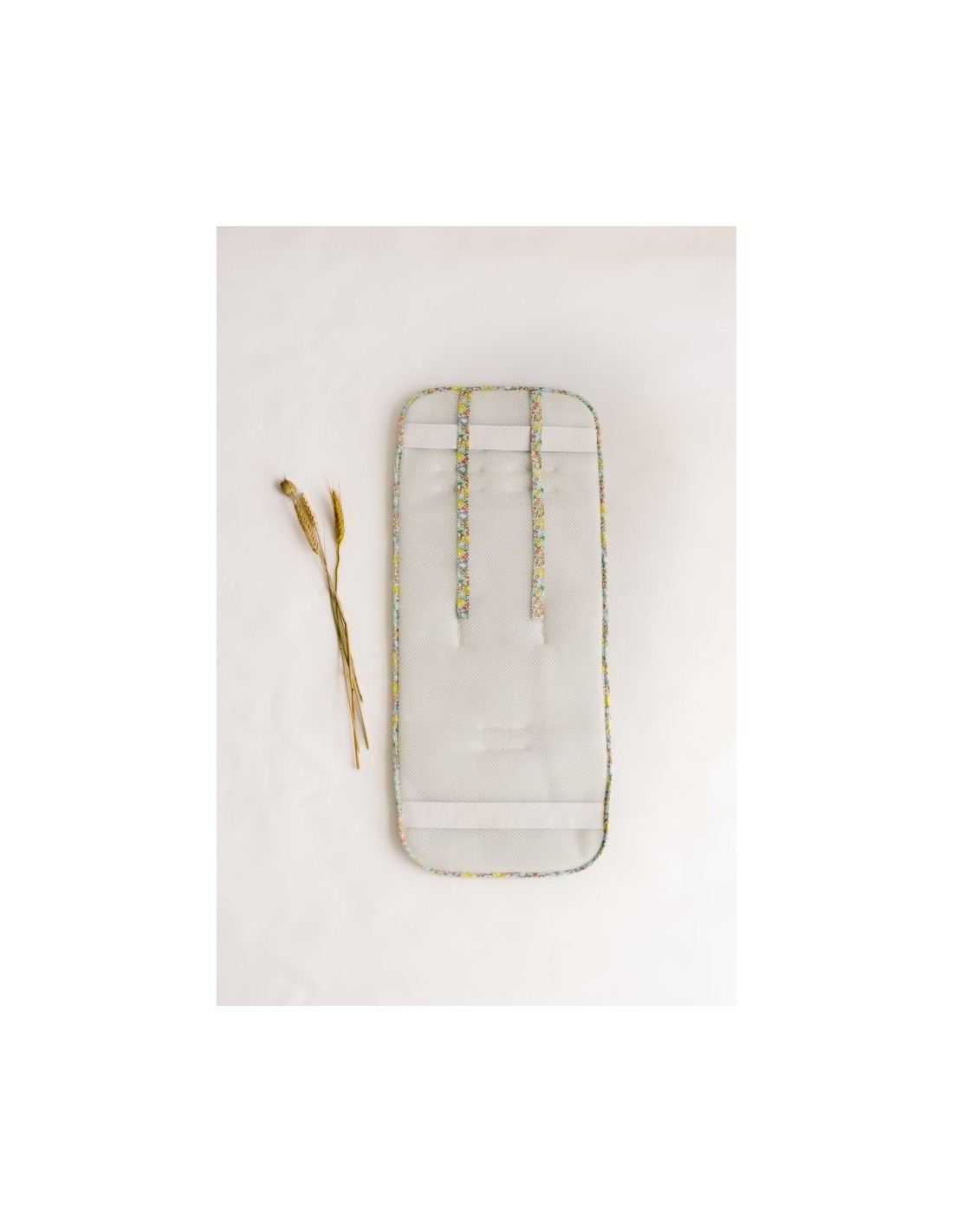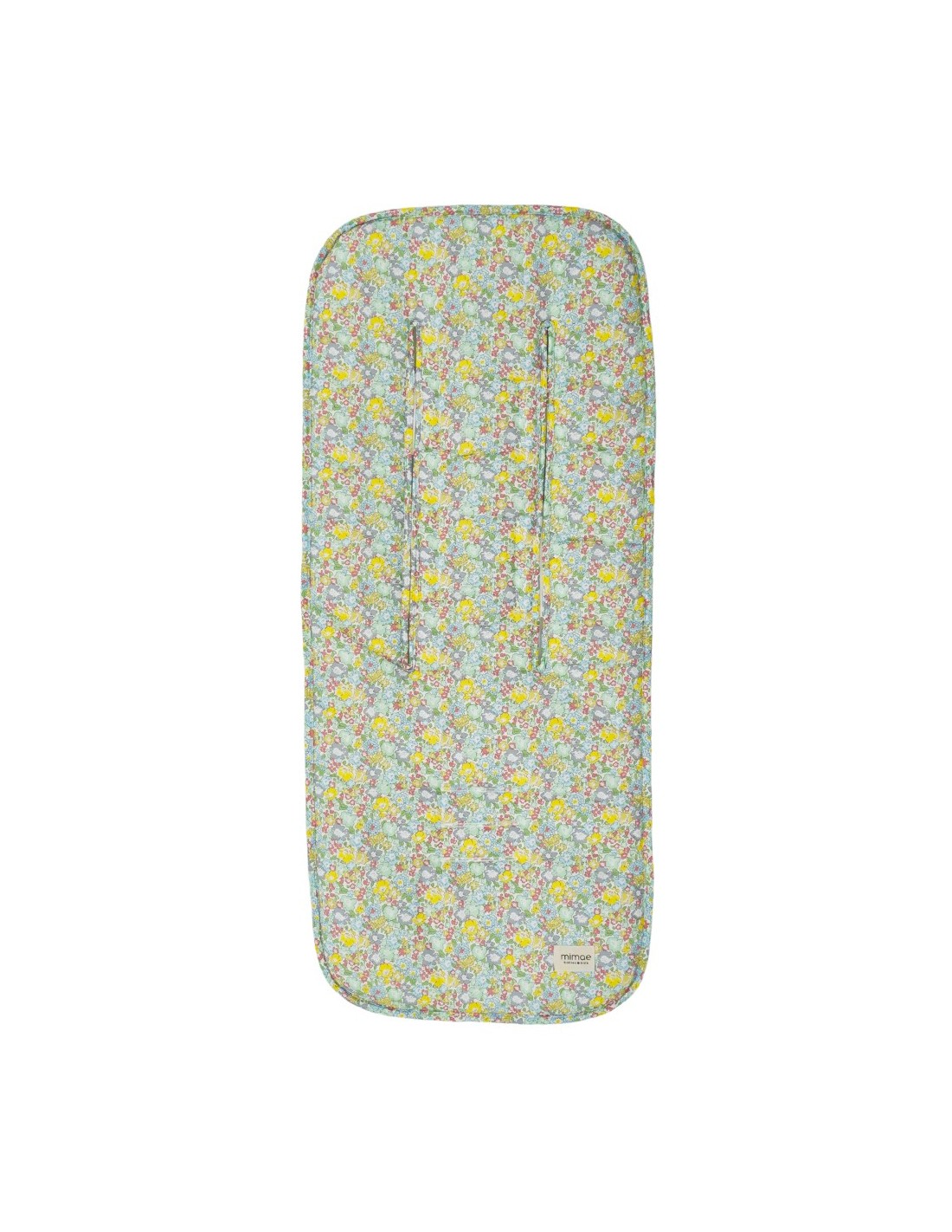 Colchonetas universales para sillas de paseo. Mulliditas tienen una guata de grosor medio y el trasero en tejido Maya 3D acolchado y transpirable. Tienen 10 ojales para que puedan adaptarse a diferentes tipos de silla. Sistema de enganche mediante goma y lazos. Estampado Liberty Martine.
