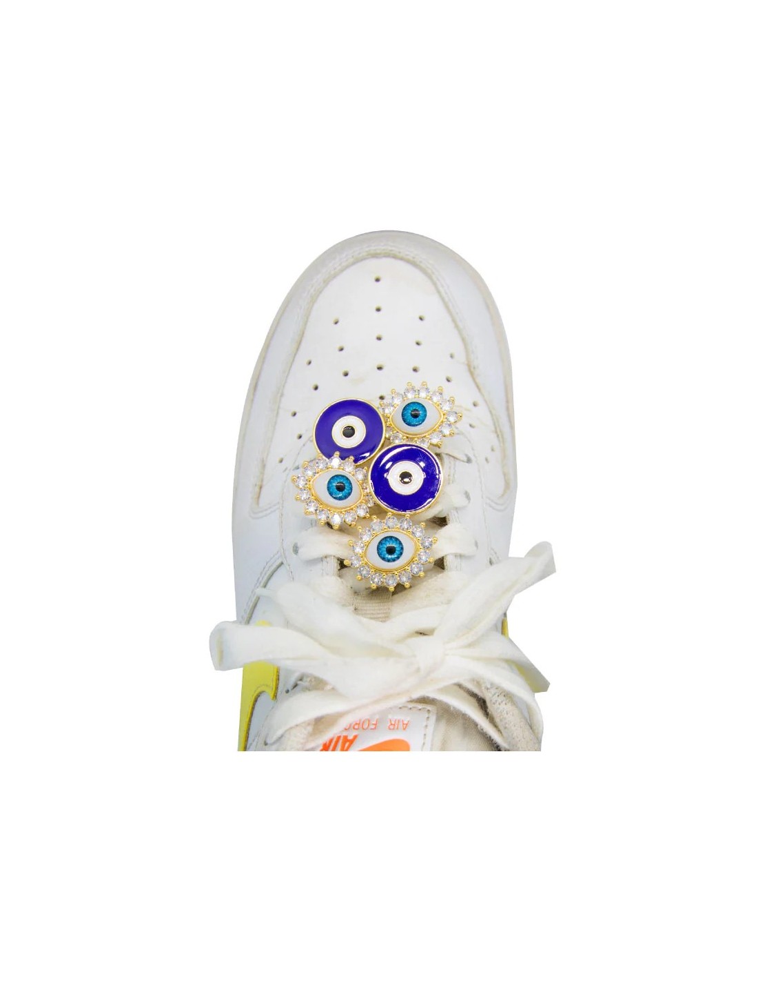 Hechos con una mezcla de metal, esmalte y cristales, y engastados en nuestra base de anillo de silicona ecológica patentada, se adhieren fácil y divertidamente a cordones de zapatos, correas de velcro, coleteros y pulseras.