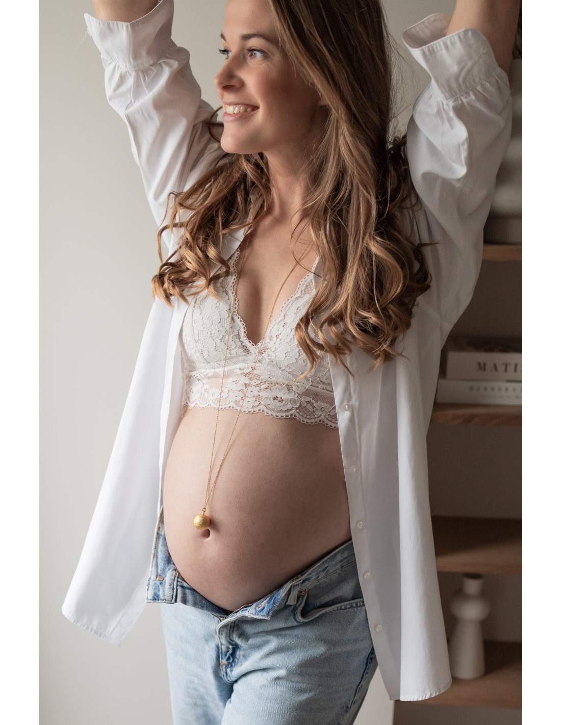 Un collar de bola para el embarazo es una hermosa joya con un significado especial. Según la antigua tradición mexicana, este collar trae felicidad, salud y prosperidad a la madre y a su bebé. Se dice que el suave tintineo de la campanilla también contribuye a un embarazo tranquilo.