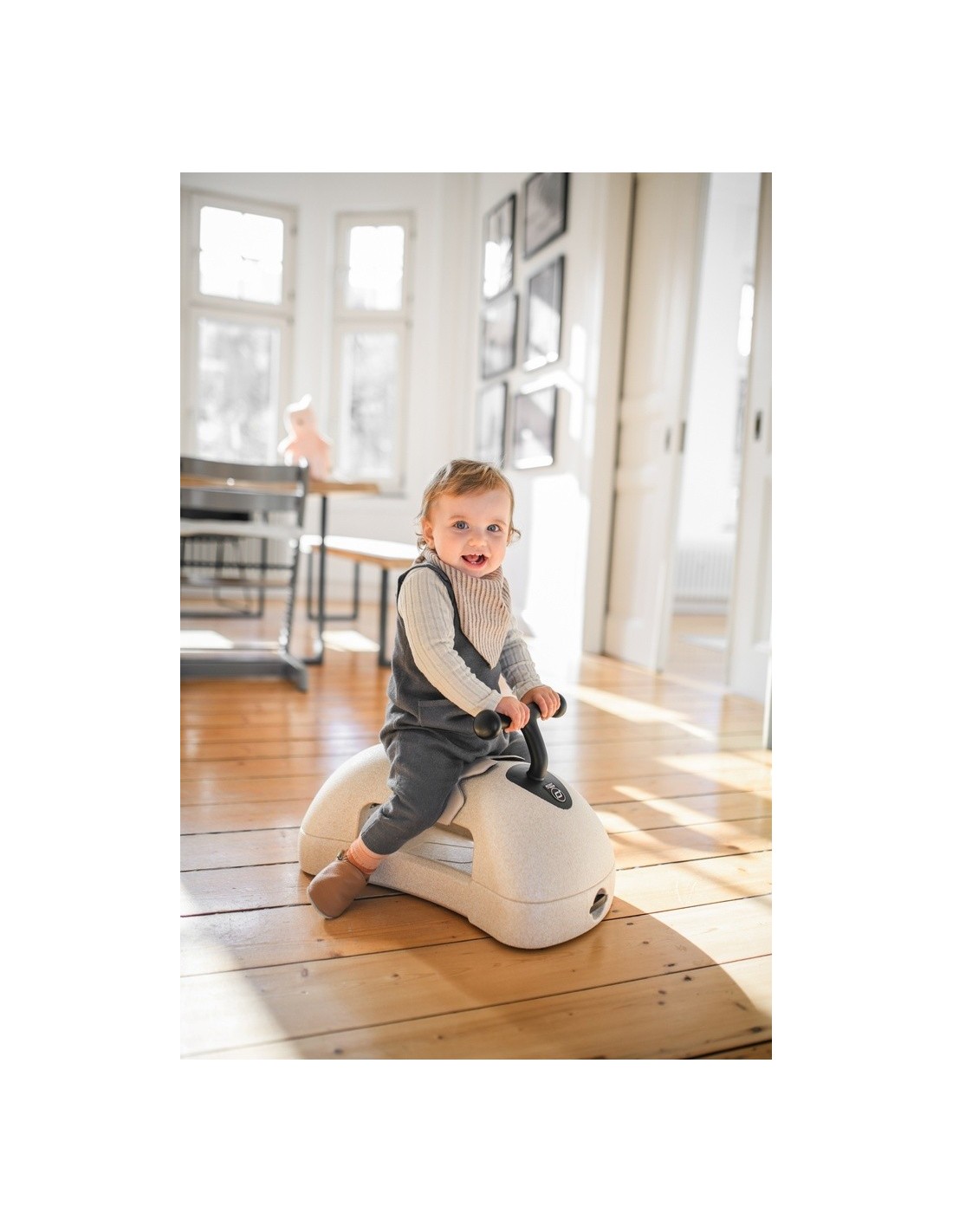 La plataforma, que se puede girar sin herramientas, ofrece dos lados diferentes. Por un lado, las almohadillas deslizantes proporcionan estabilidad, lo que es especialmente importante para los primeros intentos de ponerse de pie. El equilibrio se puede fomentar de forma lúdica. Cuando se gira la plataforma, el otro lado está equipado con ruedas silenciosas que permiten rodar suavemente sobre una superficie plana. Gracias al revestimiento de goma, tampoco dejan marcas en el suelo.