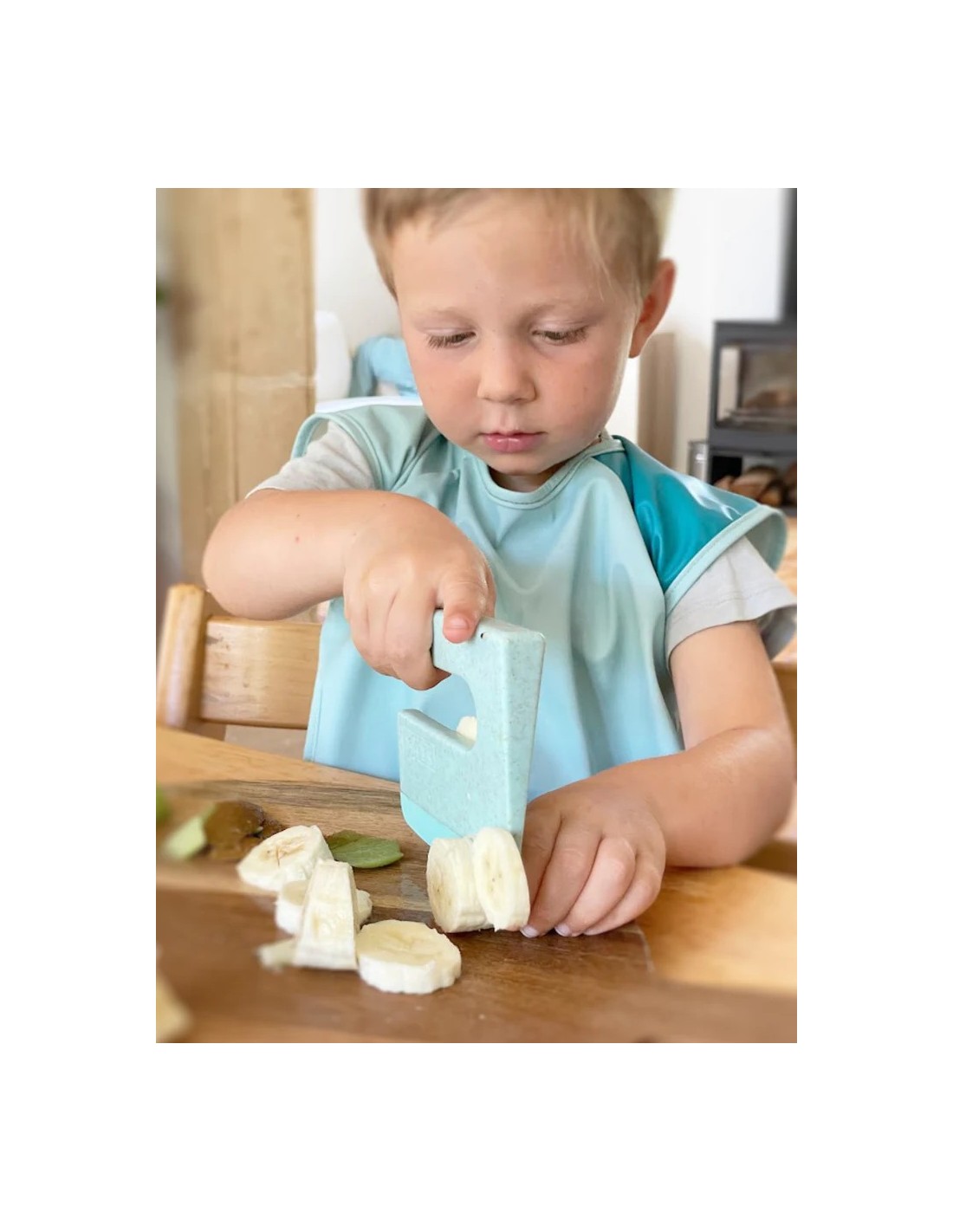 Su diseño de hoja en forma de cuña ayuda a los niños a cortar frutas y verduras con mayor facilidad, fomentando movimientos de corte seguros y controlados y reduciendo al mismo tiempo el riesgo de accidentes.
