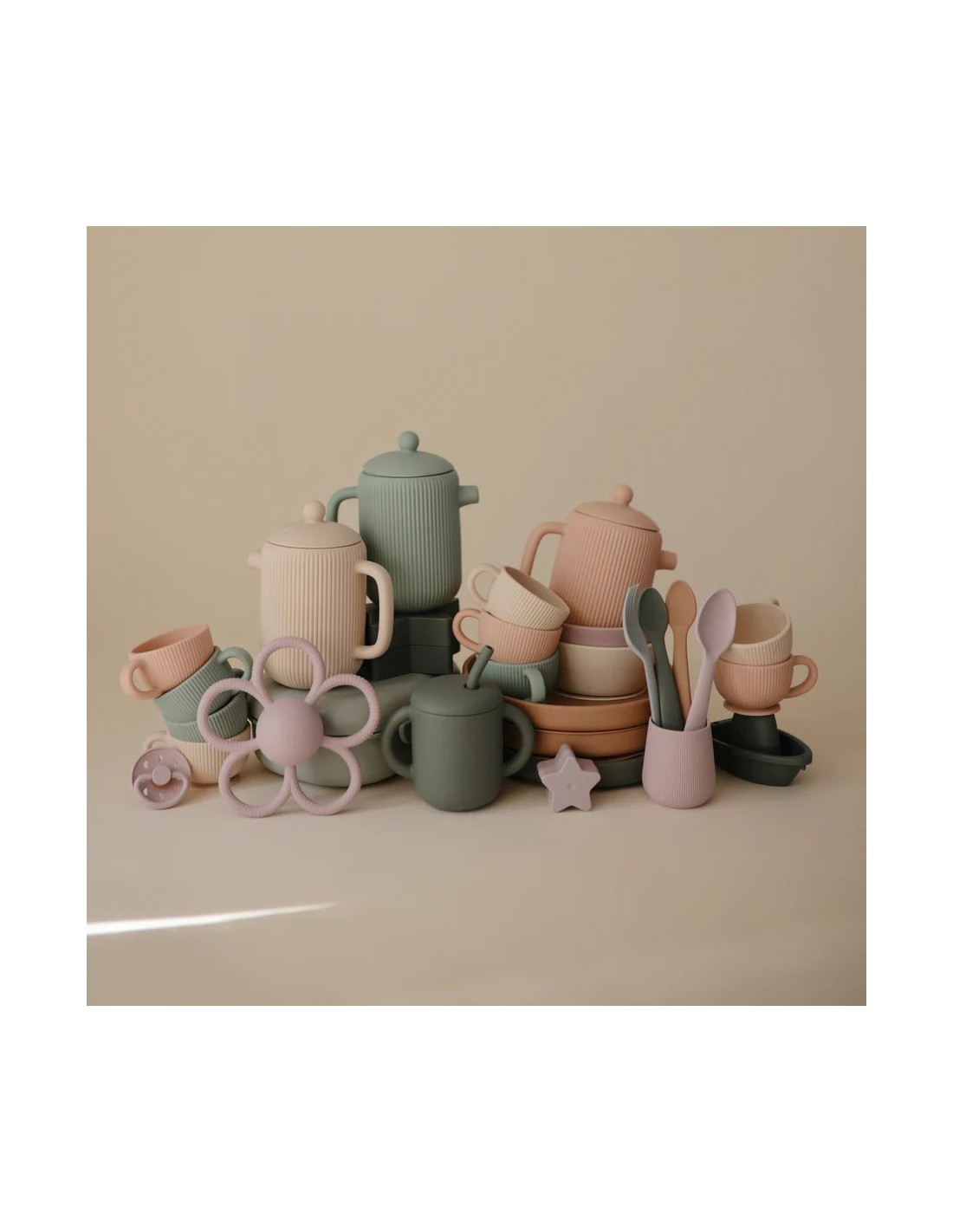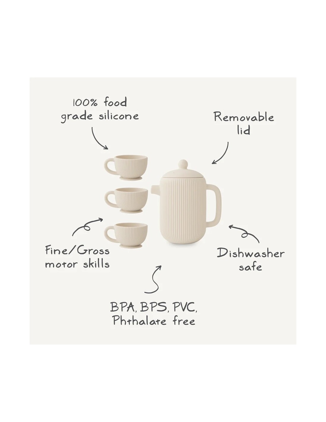 Nuestro juego de té de silicona está diseñado para manos pequeñas y una gran imaginación.
