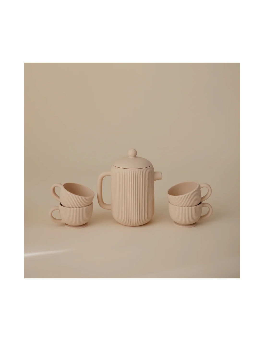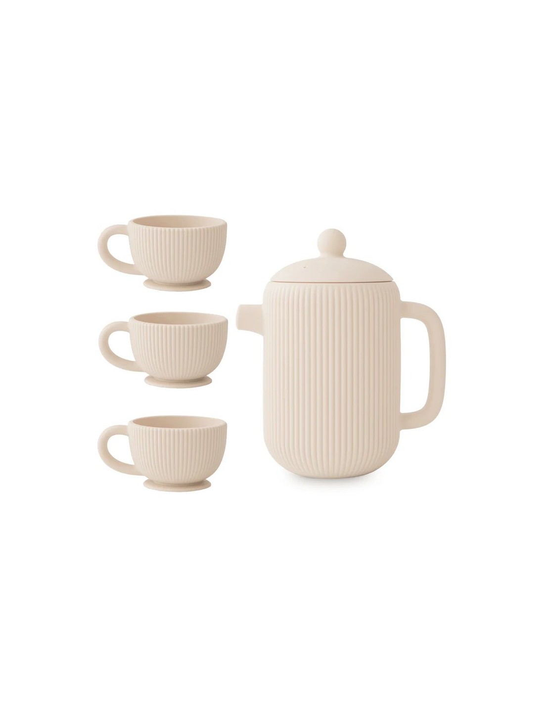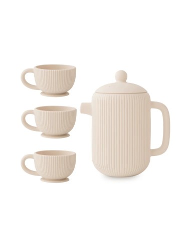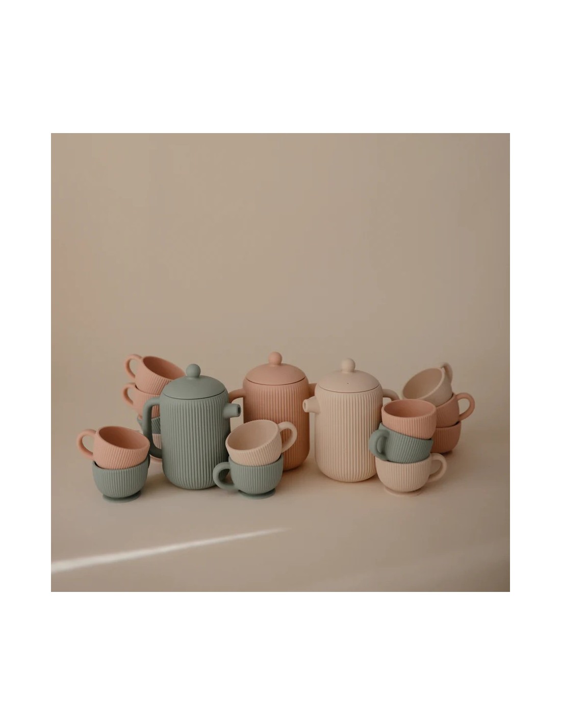 Nuestro juego de té de silicona está diseñado para manos pequeñas y una gran imaginación. Este adorable juego incluye una tetera con tapa extraíble y tres tazas a juego, todas hechas de silicona 100 % de grado alimenticio.