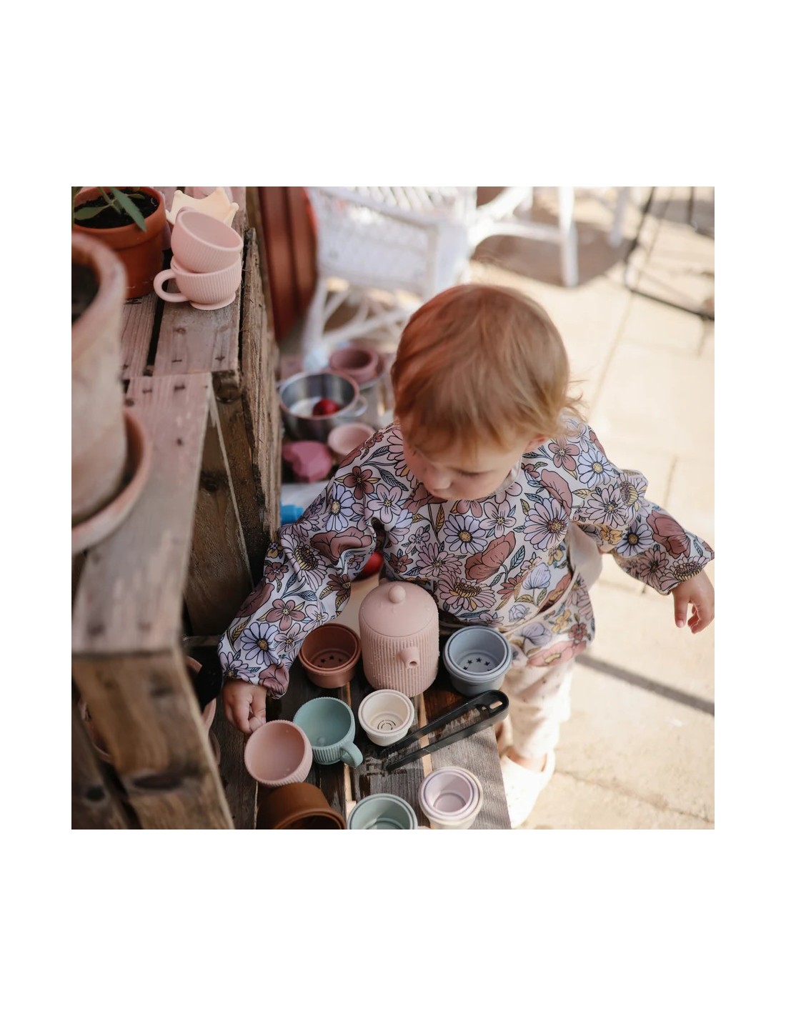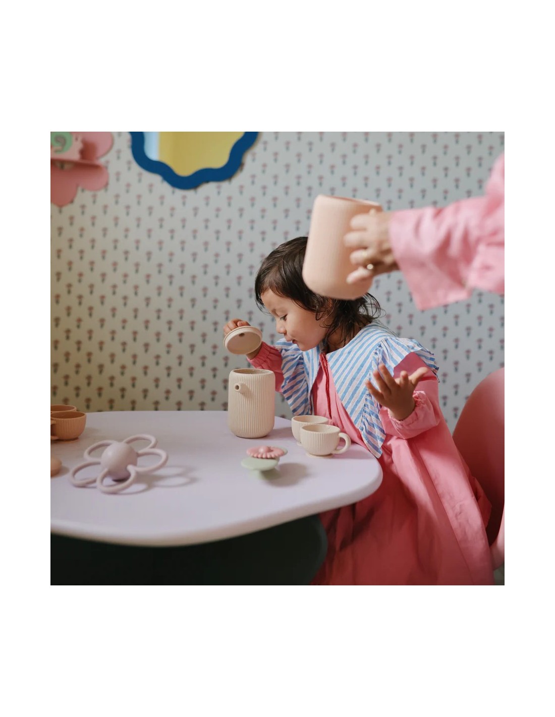Apto para lavavajillas para una limpieza fácil después de la hora del té. El juego de té de silicona de Mushie es un complemento encantador para las cocinas de juguete y la hora del baño.