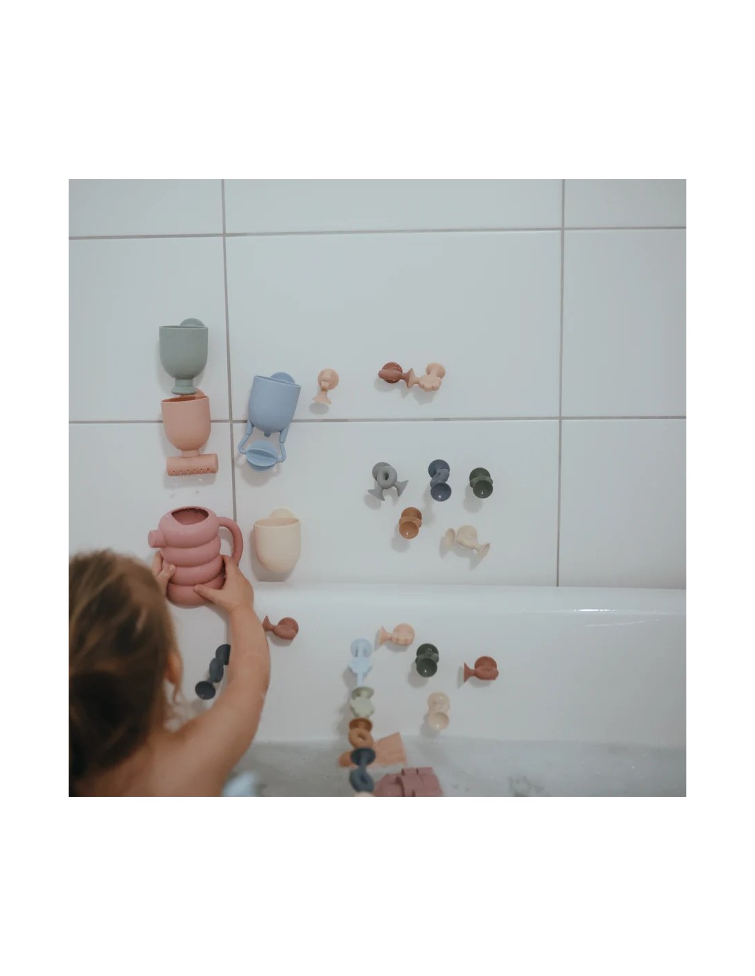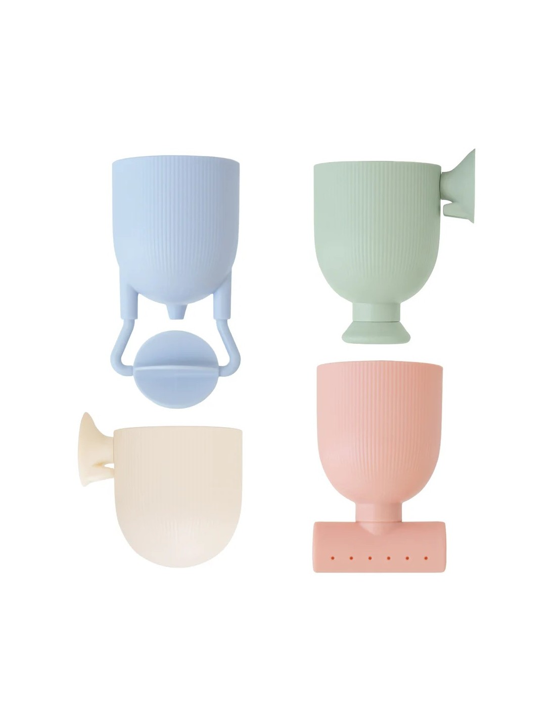 Cada vaso cuenta con una ventosa de silicona en la parte posterior, lo que permite crear arreglos creativos en las paredes de la bañera para crear un fascinante efecto cascada.
