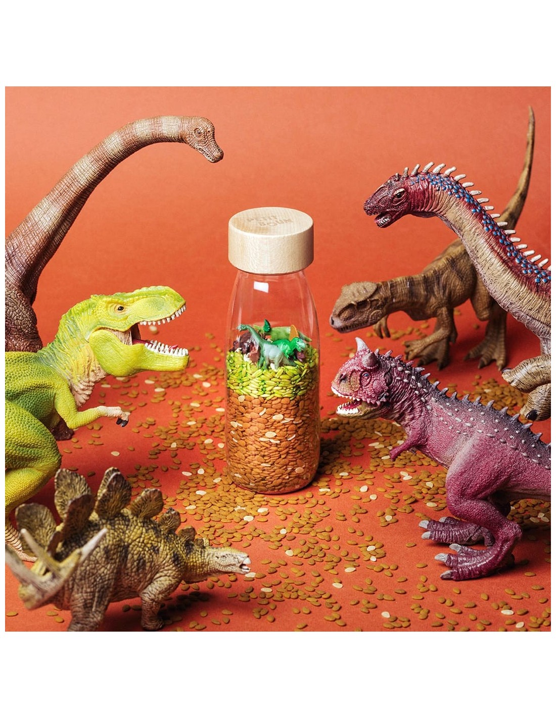 ¡Pequeños exploradores! Los dinosaurios cobran vida creando un efecto visual cautivador. Al agitar la botella pueden vivir una experiencia fascinante y relajante. ¿Puedes decir sus nombres?