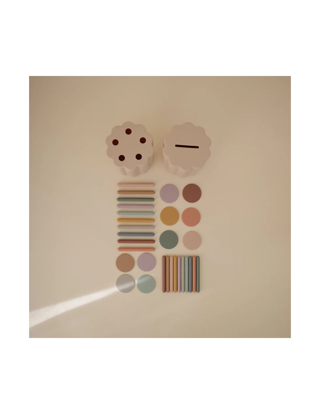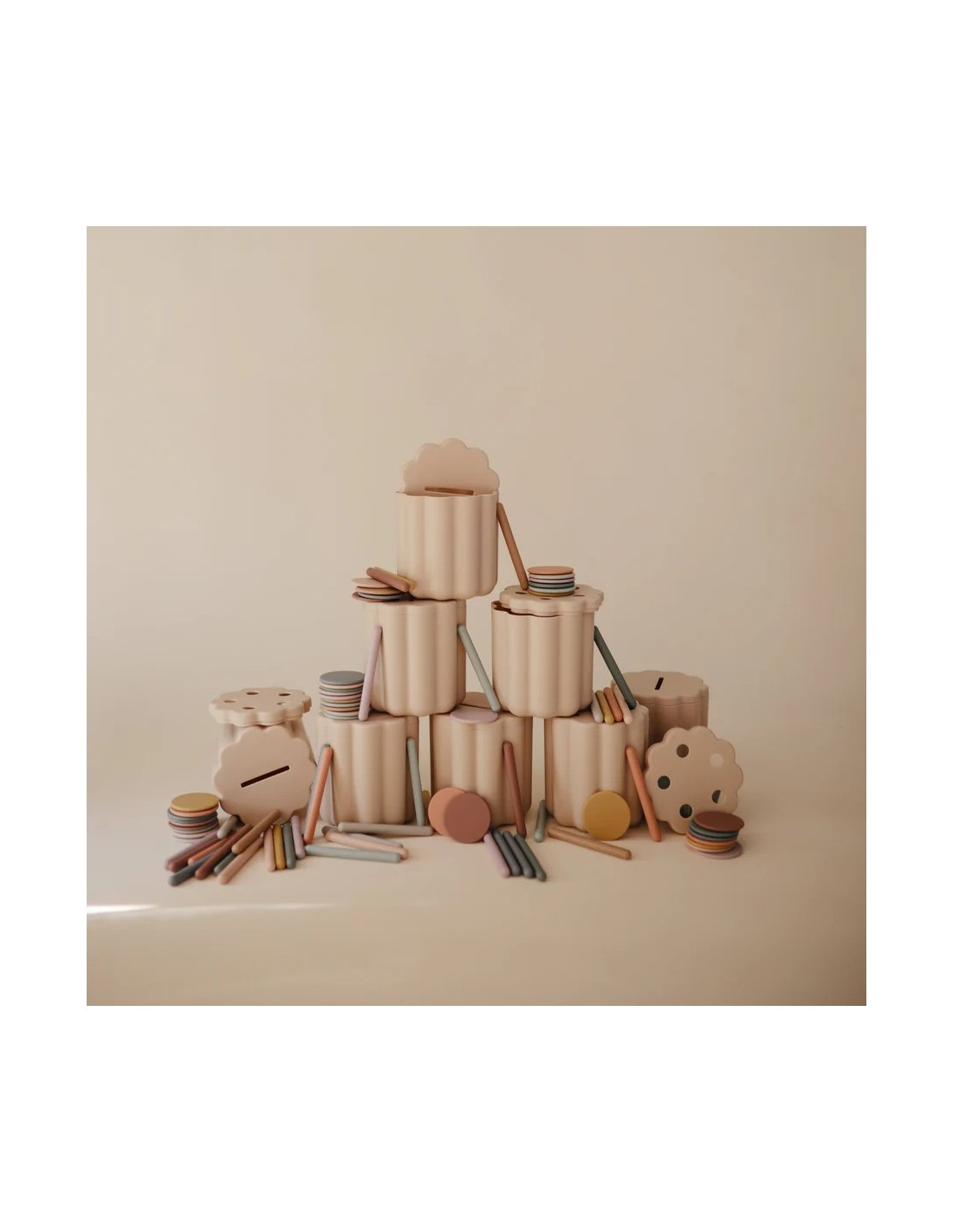 Al introducir las 20 monedas y tubos de colores por las aberturas correspondientes, los pequeños desarrollan la motricidad fina y la coordinación ojo-mano. Ya sea emparejando o clasificando, este versátil juguete ofrece horas de juego educativo para los más pequeños.