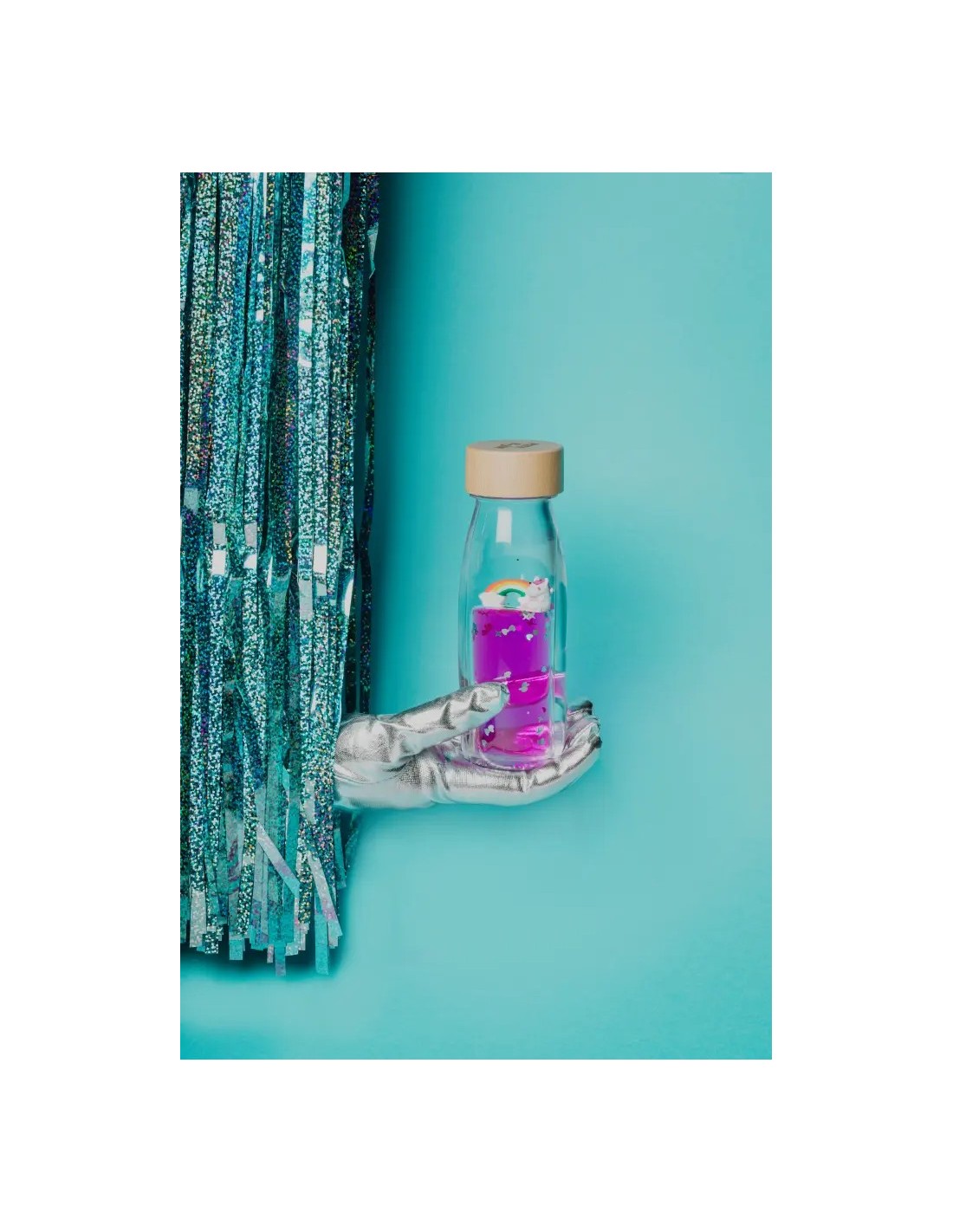 Nuestra nueva Move Bottle con efecto lupa es una invitación a sumergirse en un mundo mágico de sueños y colores. Agítala, acerca la mirada, y podrás descubrir adónde lleva el arcoiris que pinta en el cielo el legendario unicornio de los cuentos.