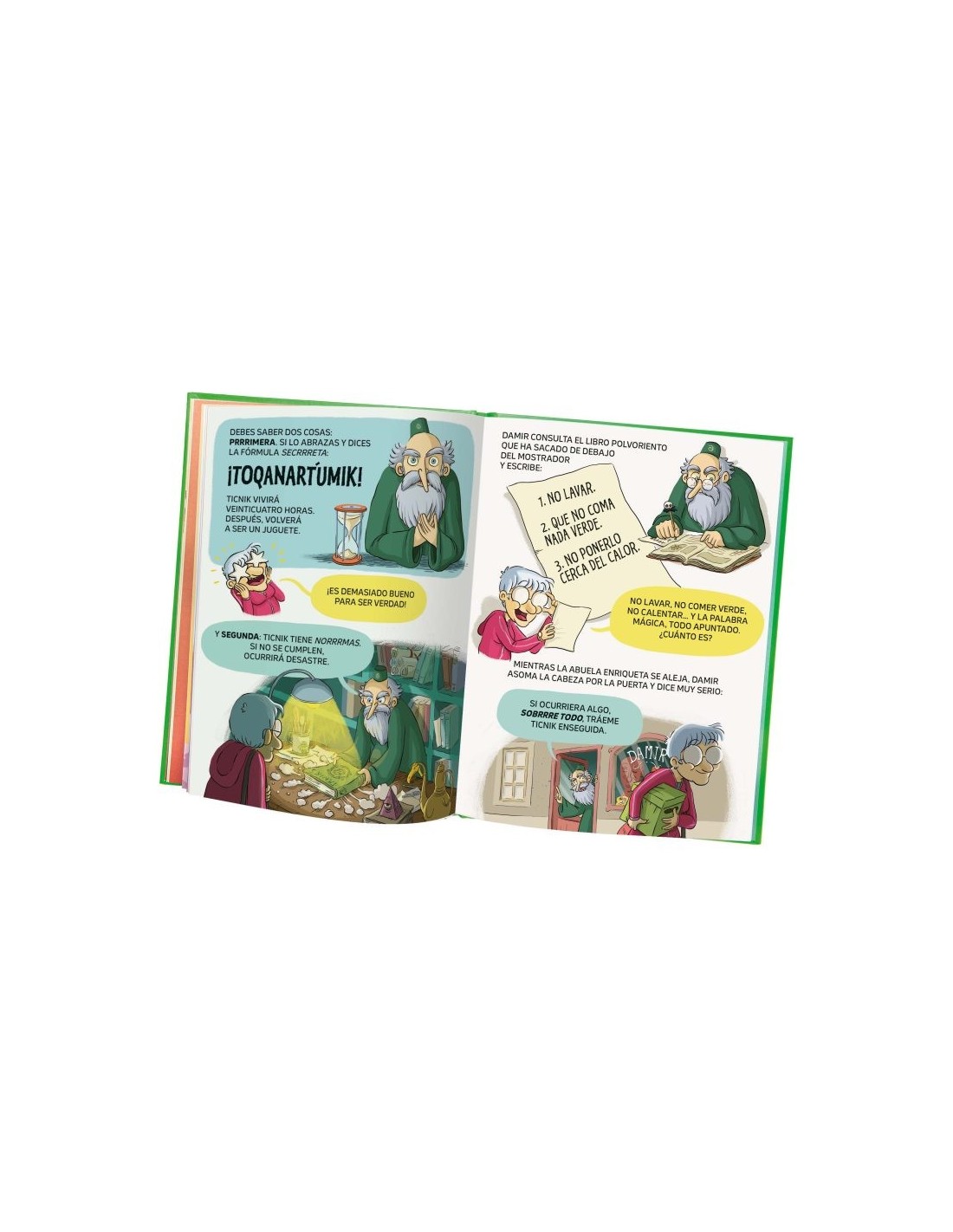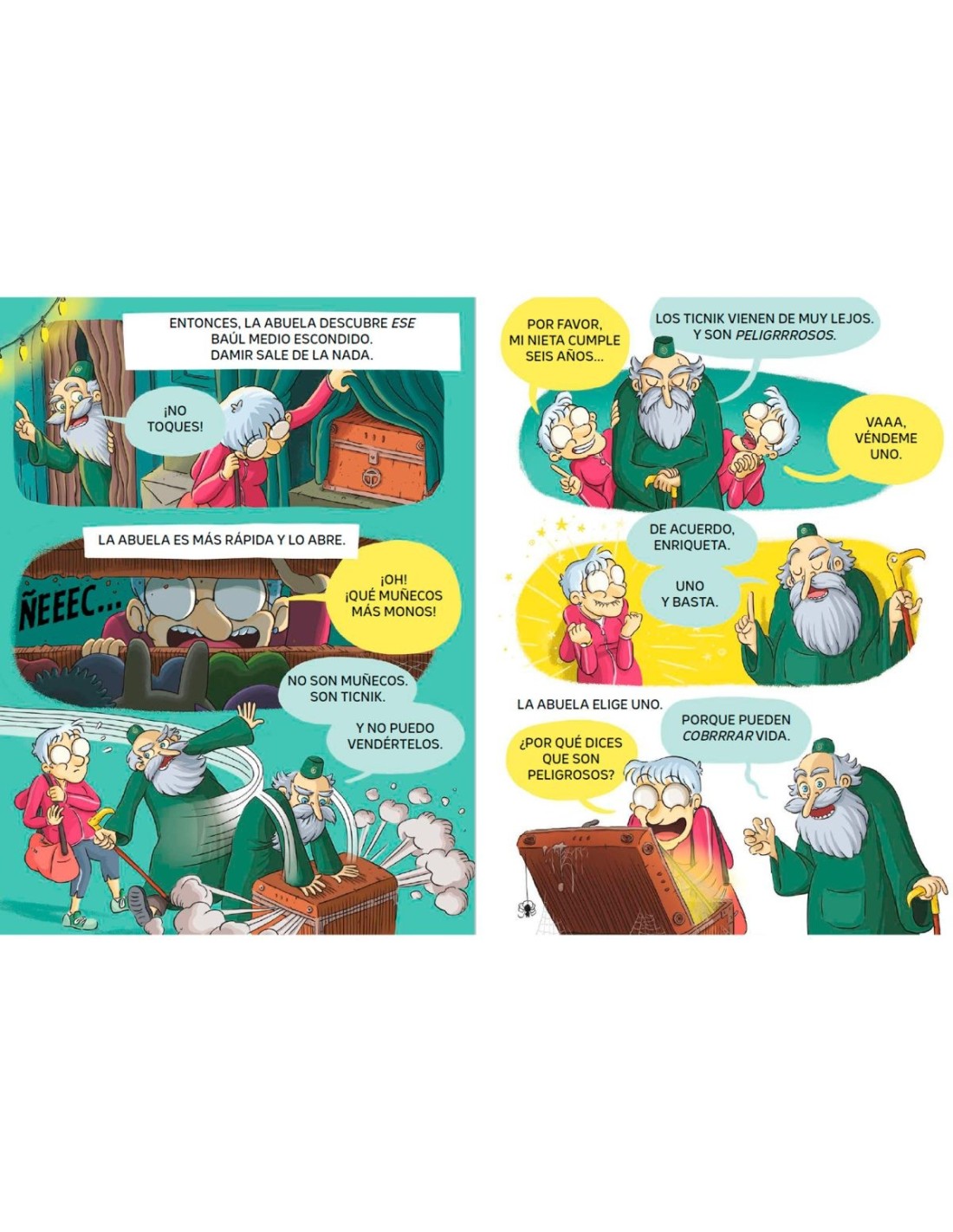 En la tienda de Damir hay un baúl escondido, lleno de muñecos. Son unos peluches tan monos que la abuela Enriqueta ha querido regalar uno a Tina, su nieta. Sin embargo, el muñeco esconde algunas sorpresas… Hay que seguir tres normas para que todo vaya bien. ¿Y si la niña olvida las normas?