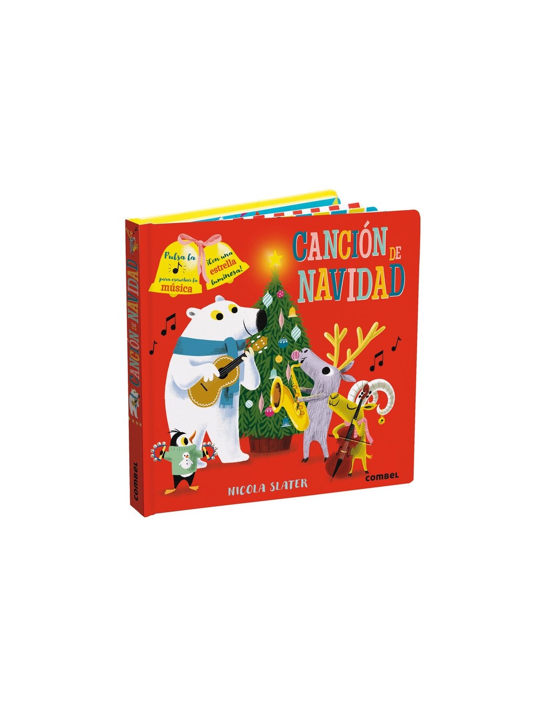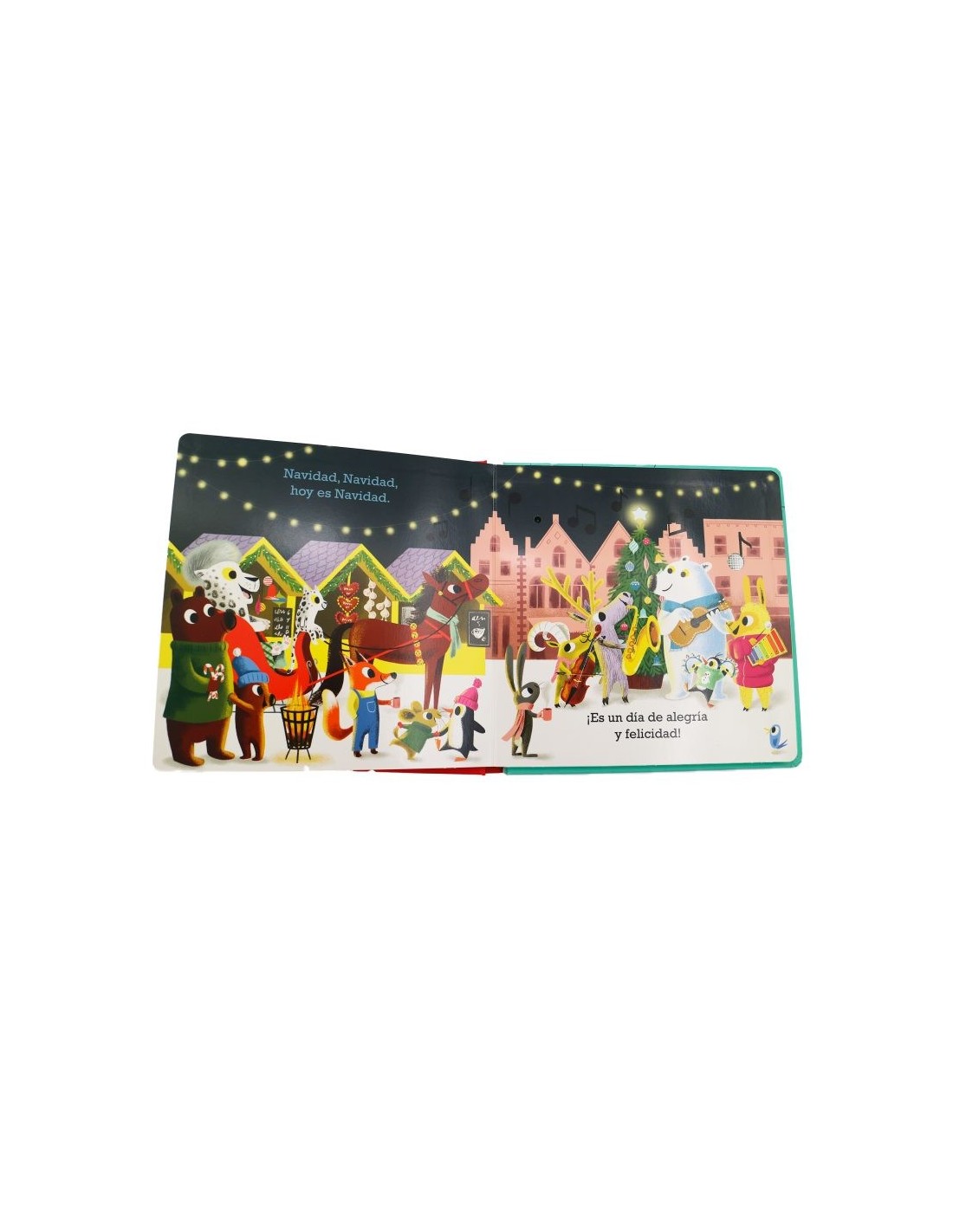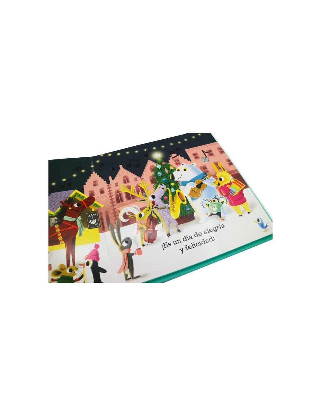 Pulsa los botones para escuchar el instrumento de cada página y canta mientras suena la música en un final conjunto. ¡Con un árbol de Navidad y una estrella que se ilumina!