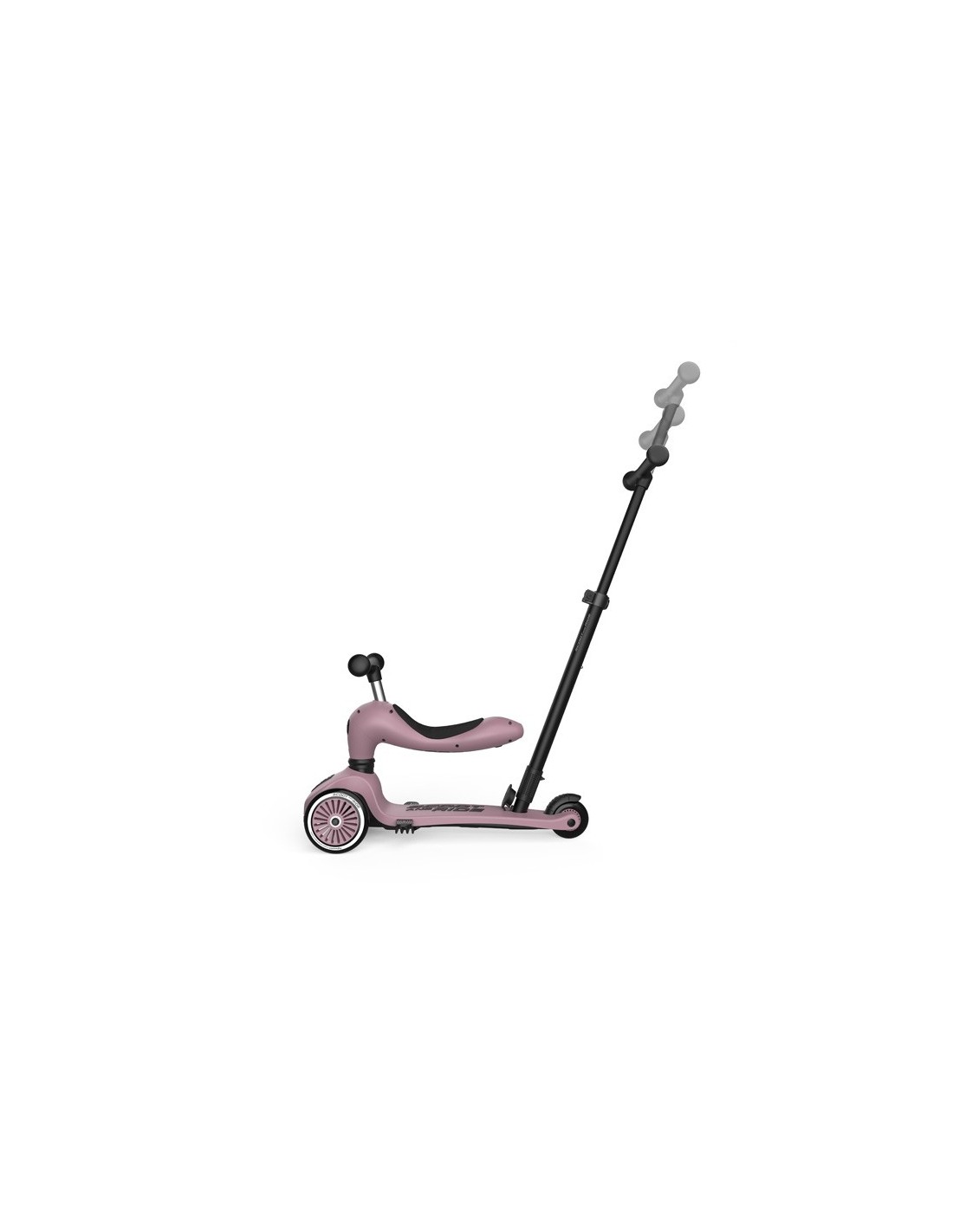 Con el Highwaykick 1 Push and Go, no tendrás que renunciar a ninguna de las funciones del Highwaykick 1. El asiento también se puede convertir fácilmente, y sin necesidad de herramientas, en un manillar, incluso mientras se utiliza la barra de empuje. Por lo tanto, el patinete se puede utilizar sentado, de pie, con o sin la barra de empuje para padres. El patinete infantil con función de empuje también se puede ajustar a tres alturas diferentes, lo que ofrece a tus hijos muchos años de diversión.