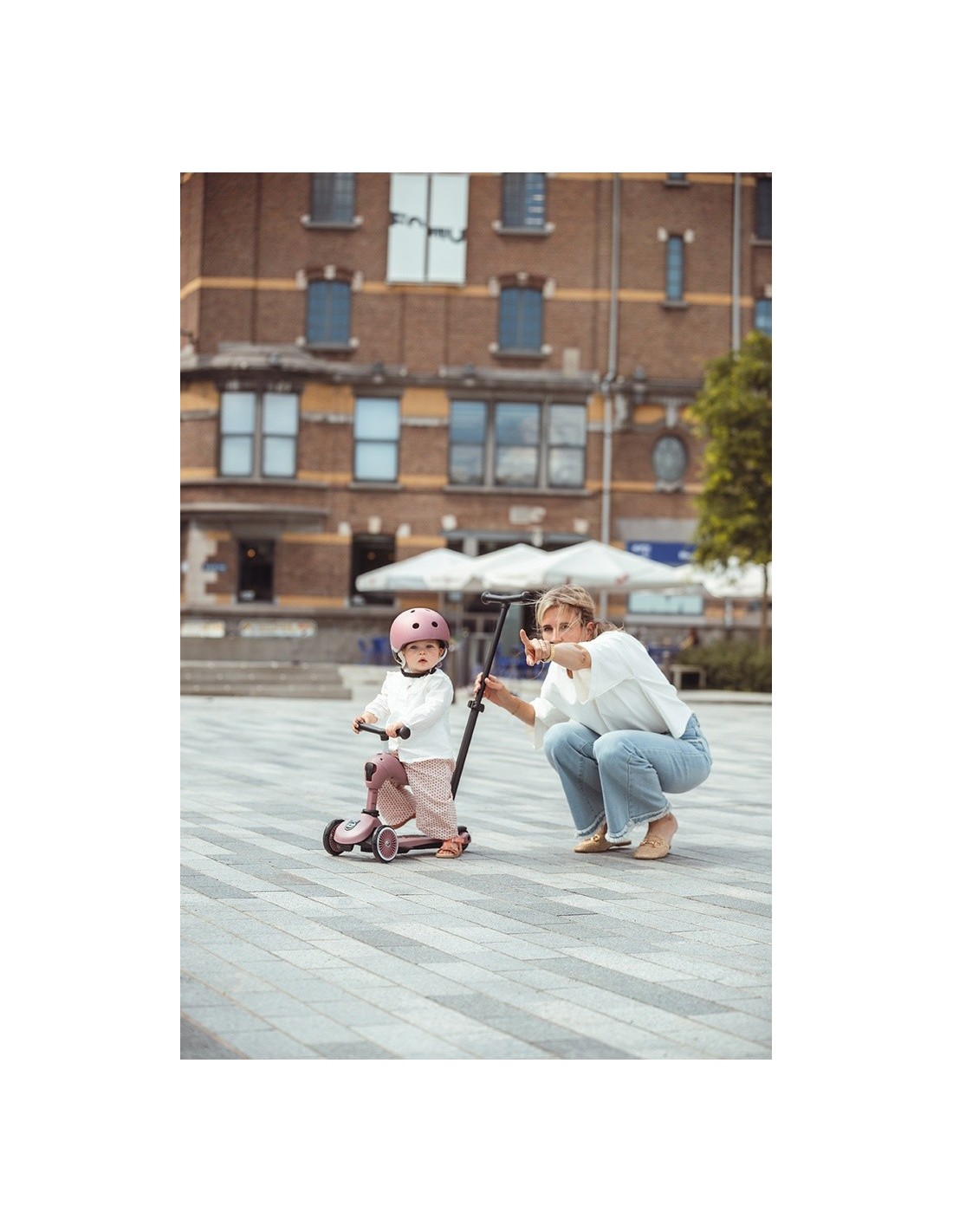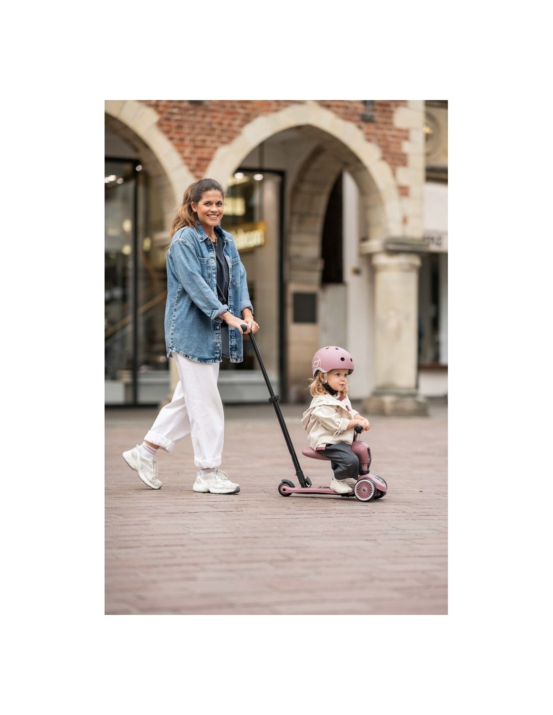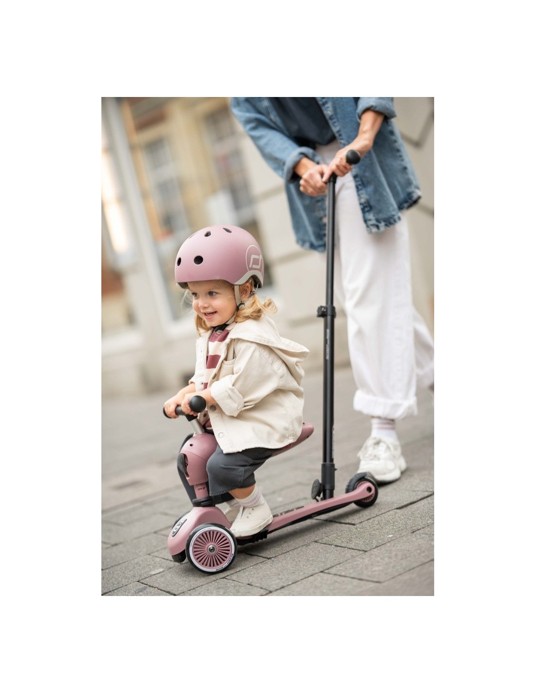 El Highwaykick 1 Push and Go combina todas las ventajas del Highwaykick 1 con una nueva e importante característica: la barra de empuje para padres. Ahora es posible empujar cómodamente a los niños de entre uno y tres años en el patinete, tanto sentados como de pie.