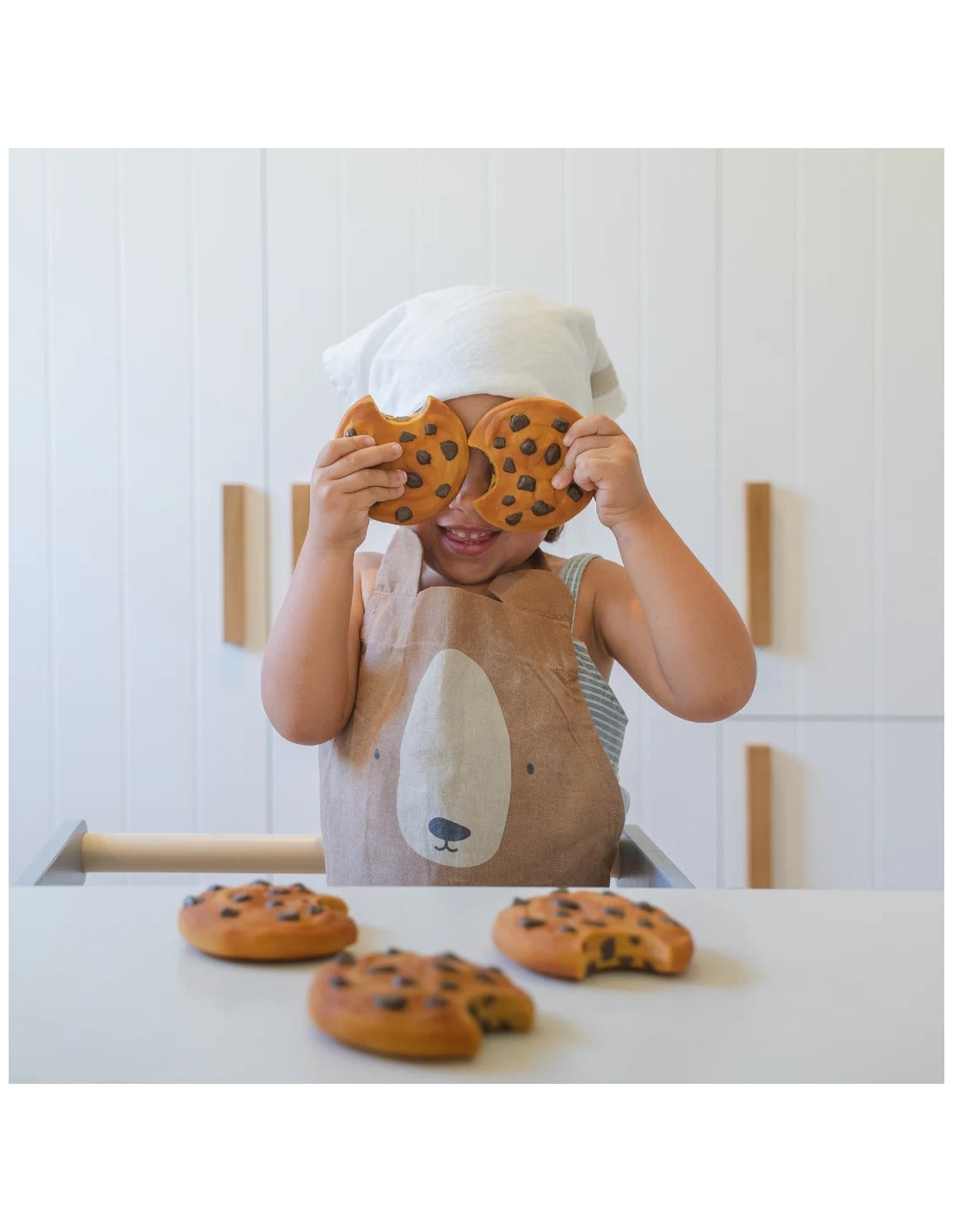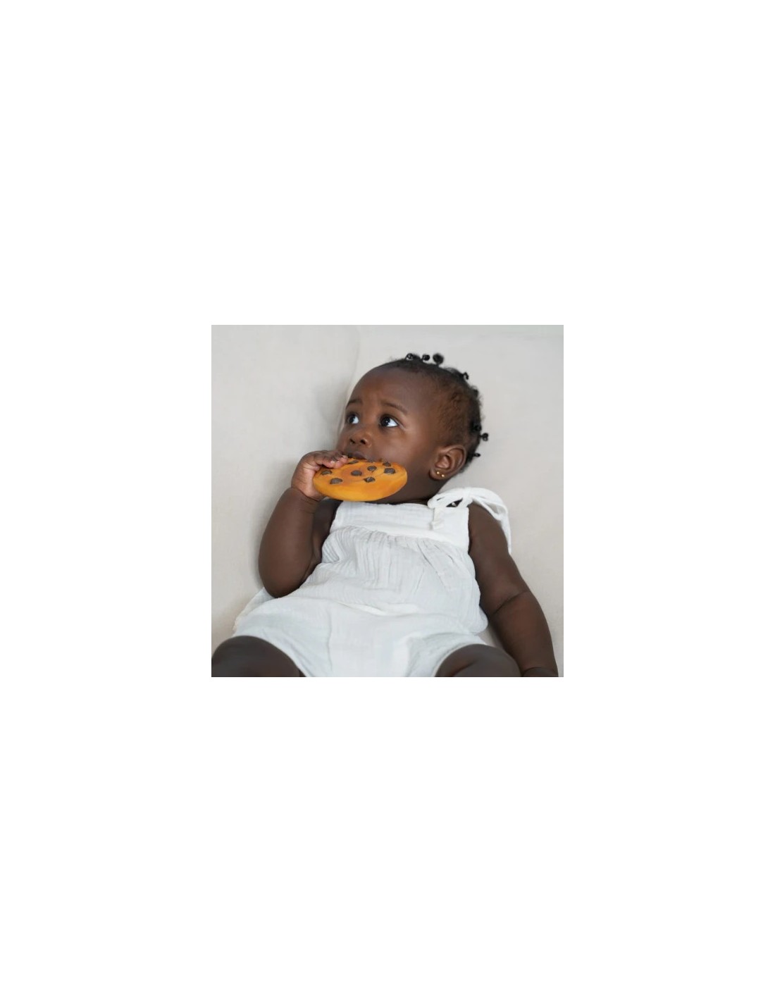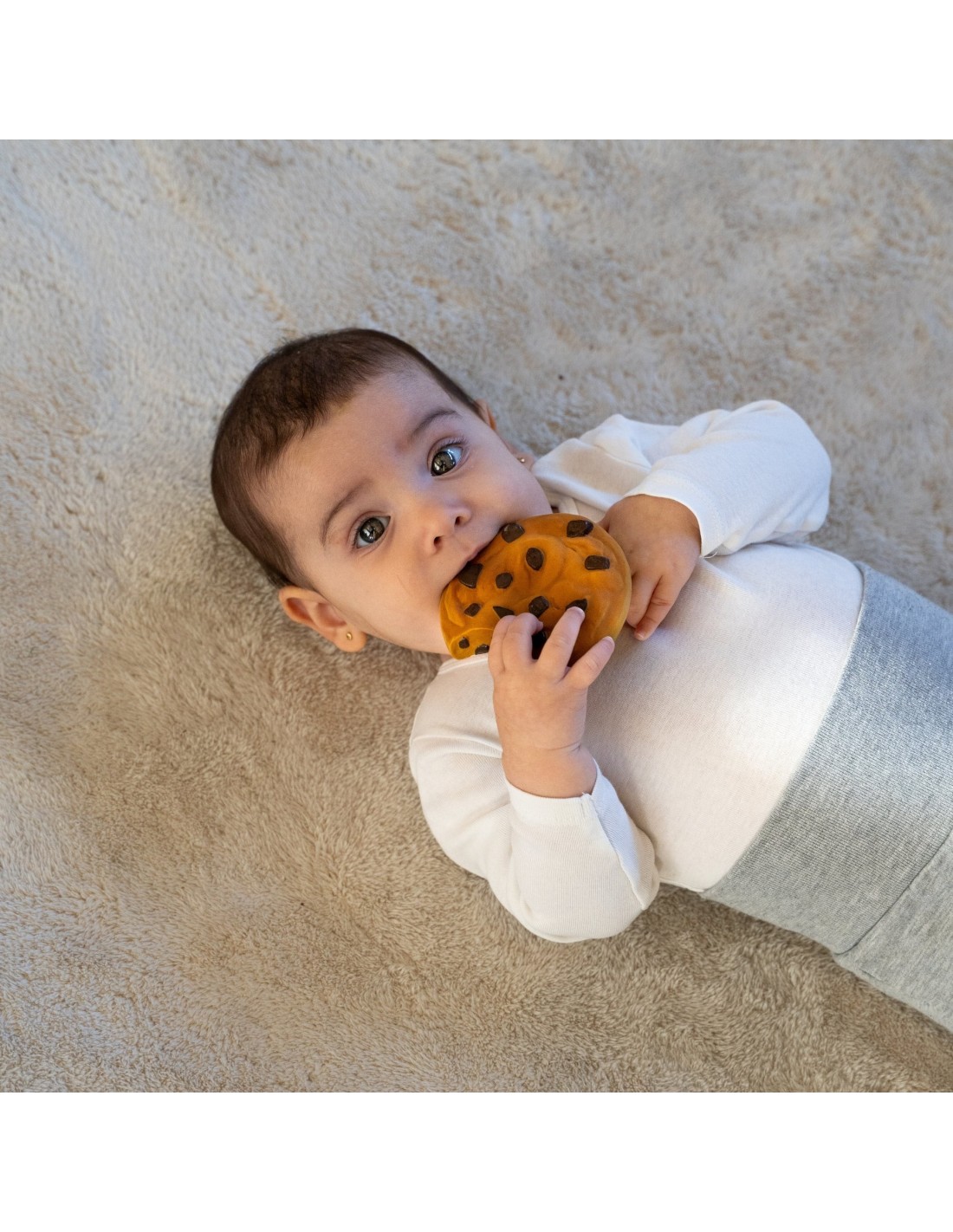 Mari le Cookie es un mordedor con forma de galleta pensado para aliviar las molestias de la dentición mientras estimula los sentidos del bebé. Su diseño artesanal y sus pequeños relieves tipo “chips” facilitan el agarre y ofrecen un suave masaje en las encías. Además de calmar, transmite sensación de ternura y bienestar, convirtiendo cada mordisquito en un momento de juego y descubrimiento. Favorece la coordinación mano-boca y el aprendizaje sensorial, y puede usarse como mordedor, juguete sensorial, de baño o elemento decorativo.
