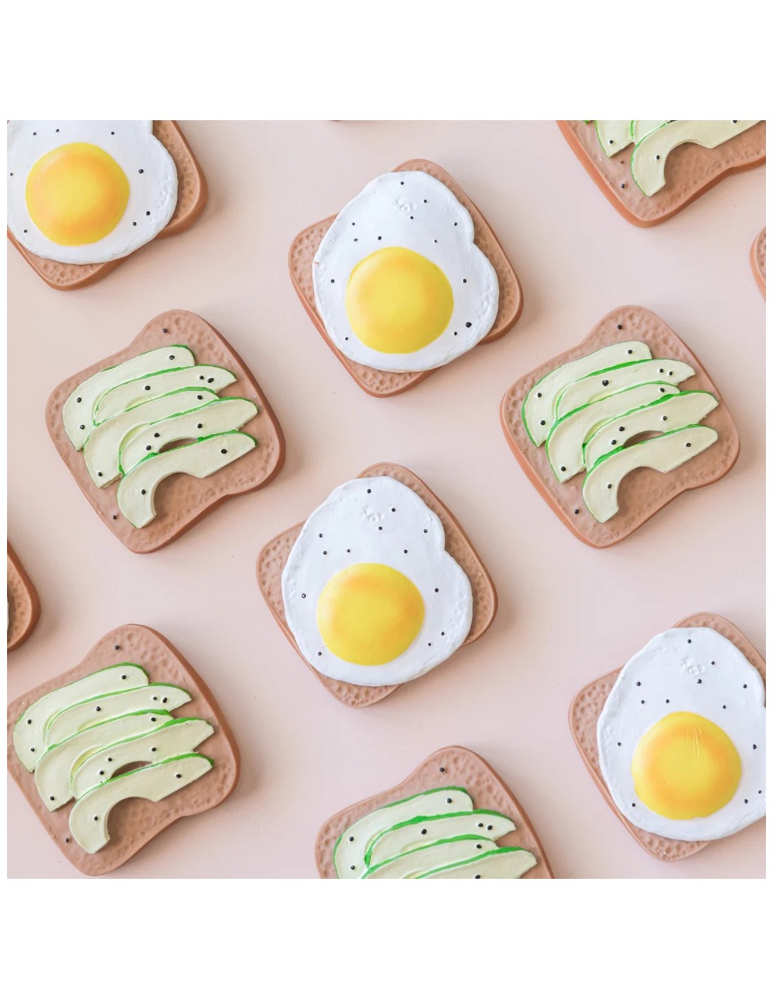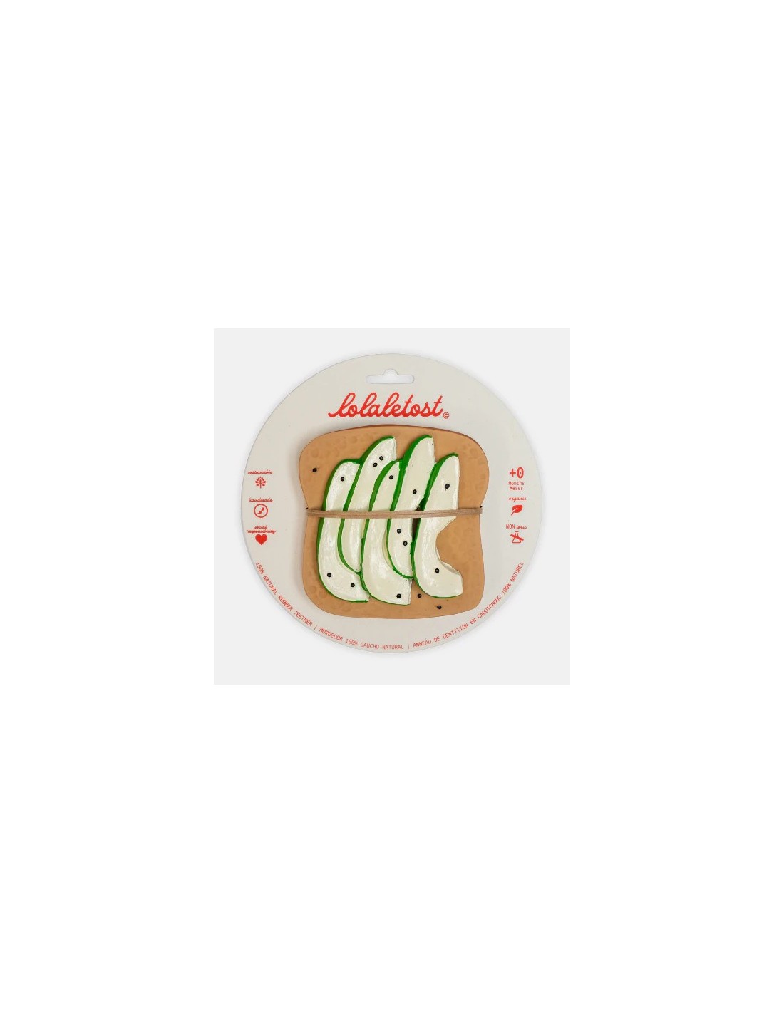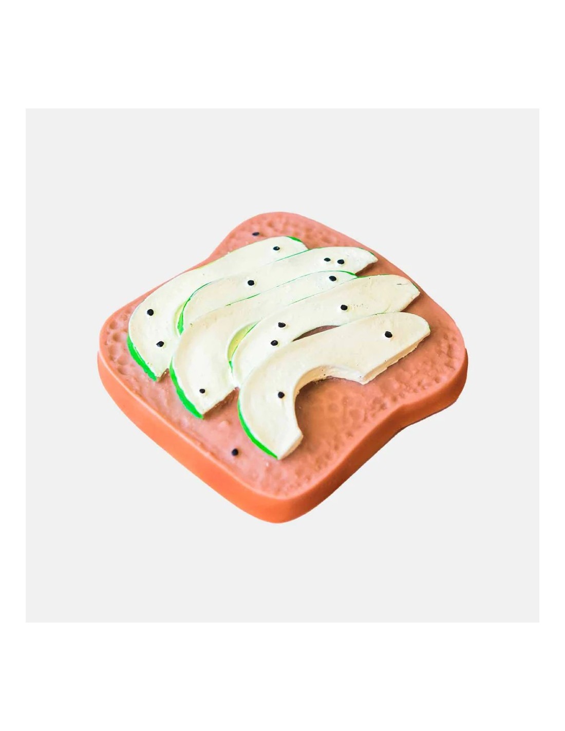El mordedor en forma de tostada con aguacate alivia eficazmente las molestias de la dentición gracias a su textura suave, realista y fácil de agarrar. Inspirado en las propiedades nutritivas del aguacate, introduce a los bebés en el amor por los alimentos saludables desde los primeros meses. Sus colores y relieves estimulan el tacto, la vista y la coordinación mano-boca, convirtiendo la dentición en una experiencia sensorial divertida y segura. Además, es un accesorio versátil que puede utilizarse como mordedor, juguete sensorial, de baño o elemento decorativo.