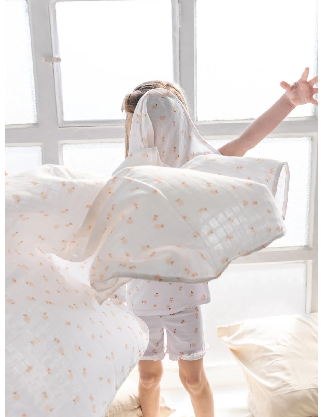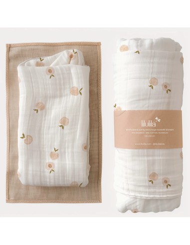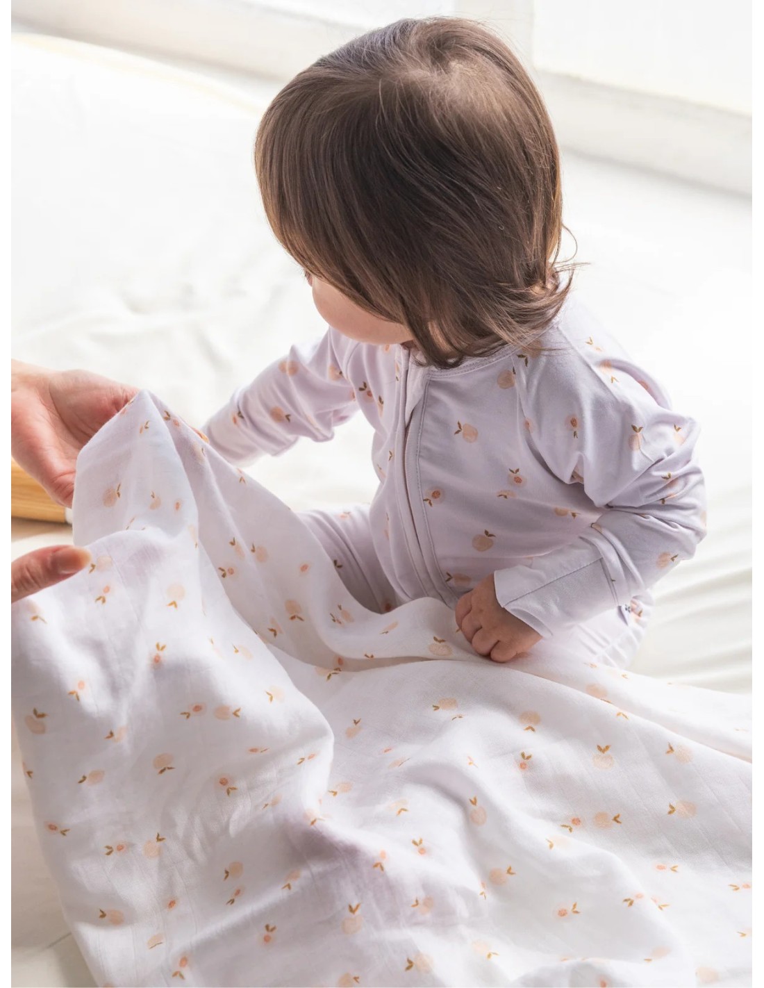 Envuelve a tu bebé en suavidad con la muselina Peaches Bamboo Baby. Fabricada con bambú y algodón, esta muselina de tamaño grande es multiusos y perfecta para combinar con cualquier pijama o pelele de la colección coral y flores. ¡Es esencial para cualquier pequeño!