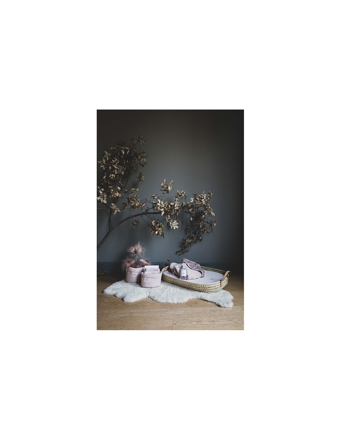 Cesta organizadora de tamaño pequeño. Interior laminado. Ideal para guardar productos de higiene y otras cosas que quieras tener a mano en el cambiador de muebles.