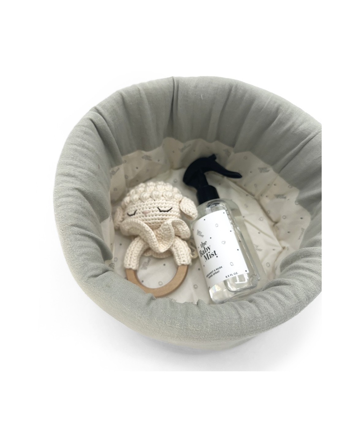 Cesta organizadora de tamaño mediano. Interior plastificado. Ideal para guardar pañales y otros productos que quieras tener a mano en el cambiador.