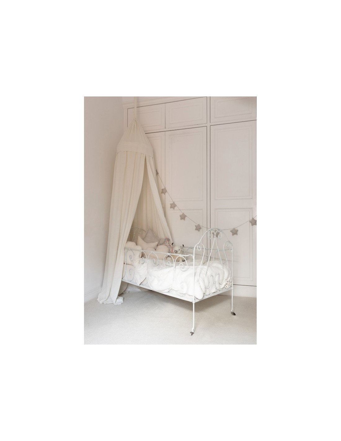 Es compatible con cunas de 60 o 70 cm de ancho y está confeccionado en una única pieza, no desenfundable confeccionada en algodón orgánico 100% con certifcado Gots.